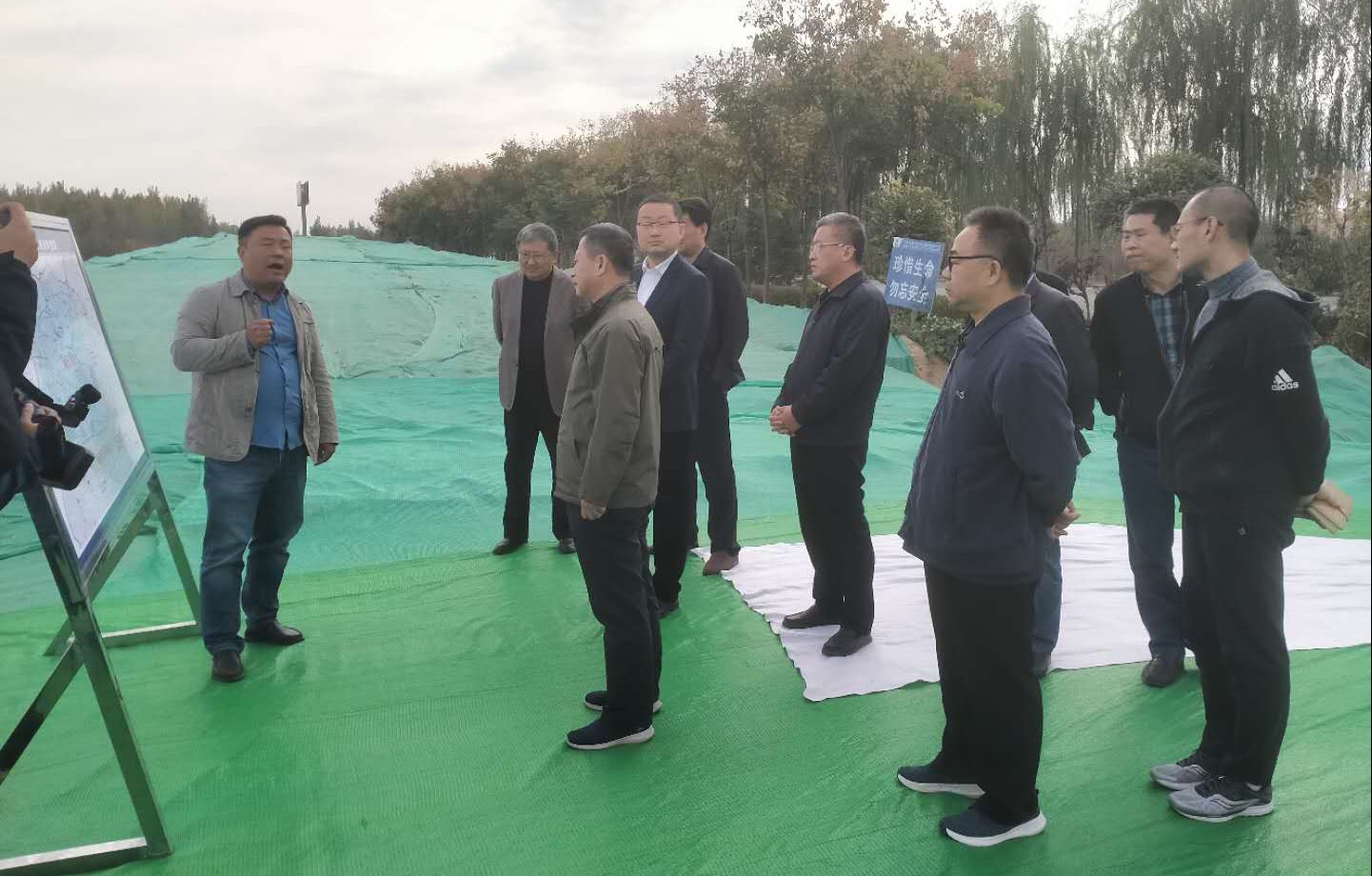 2020年10月27日,省水利廳副廳長王祖利蒞臨恩縣洼滯洪區建設工程水利二標安全區六五河擋洪閘工程檢查工程建設進展情況,德州市水利局邢朝峰局長、德州市水利局吳軍副局長、武城縣委副書記季之嶺、滯洪區書記李勝奎、武城縣水利局王獻峰局長、恩縣洼滯洪區建設工程建設管理處戚云剛、山東水總有限公司項目部一行人員參加了安全區六五河擋洪閘工程的巡視工作。