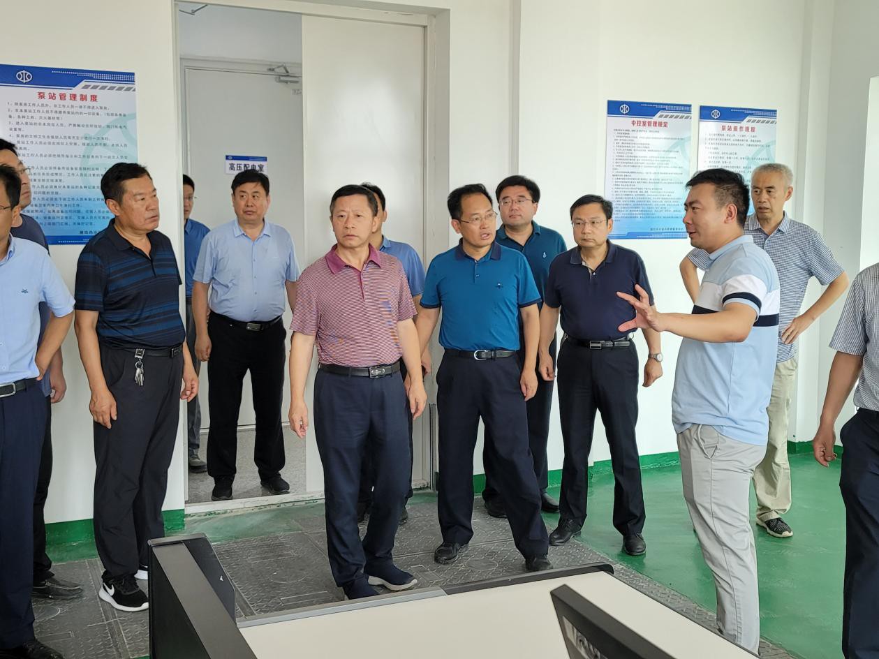 7月8日,在省流域中心、濰坊市、壽光市相關(guān)領(lǐng)導(dǎo)的陪同下,山東省水利廳一級巡視員王祖利到我公司承建的羊橋泵站、八面河泵站視察工程防洪度汛準備情況。檢查組一行察看了泵站中控室、主廠房、擋潮閘等,項目經(jīng)理張仰保匯報了工程所取得的進展,操作人員演示了主泵開機排澇,檢查組對工程所取得的效果一致表示滿意。