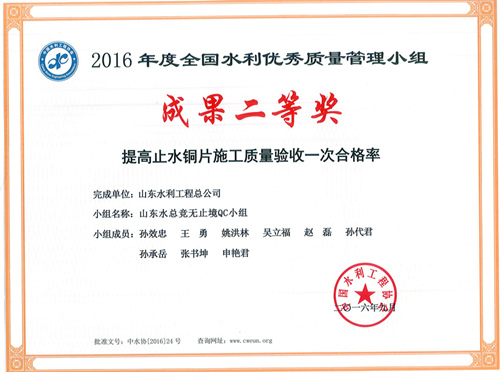 公司“竟無(wú)止境QC小組”榮獲2016年全國(guó)水利優(yōu)秀質(zhì)量管理小組