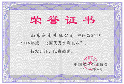公司榮獲2015-2016年度“全國優秀水利企業”