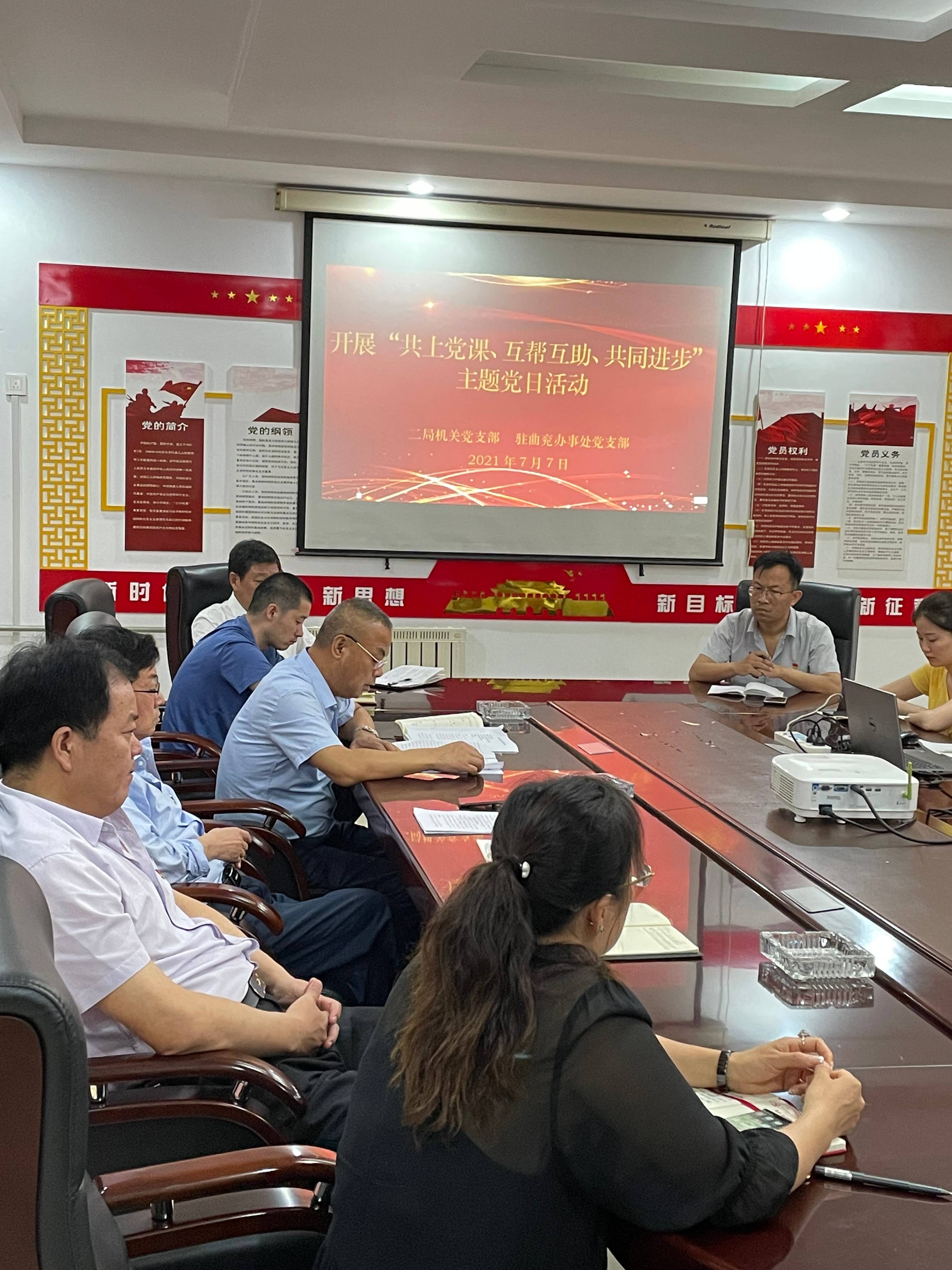 為進一步豐富黨員教育形式,增強黨員教育實踐,提高支部凝聚力,推動“三會一課”常態(tài)化、規(guī)范化, 7月7日,二局機關黨支部、駐曲兗辦事處黨支部在曲阜基地黨員活動室聯(lián)合開展“共上黨課、互幫互助、共同進步”主題黨日活動。兩個支部黨員、發(fā)展對象以及入黨積極分子共22人參加。