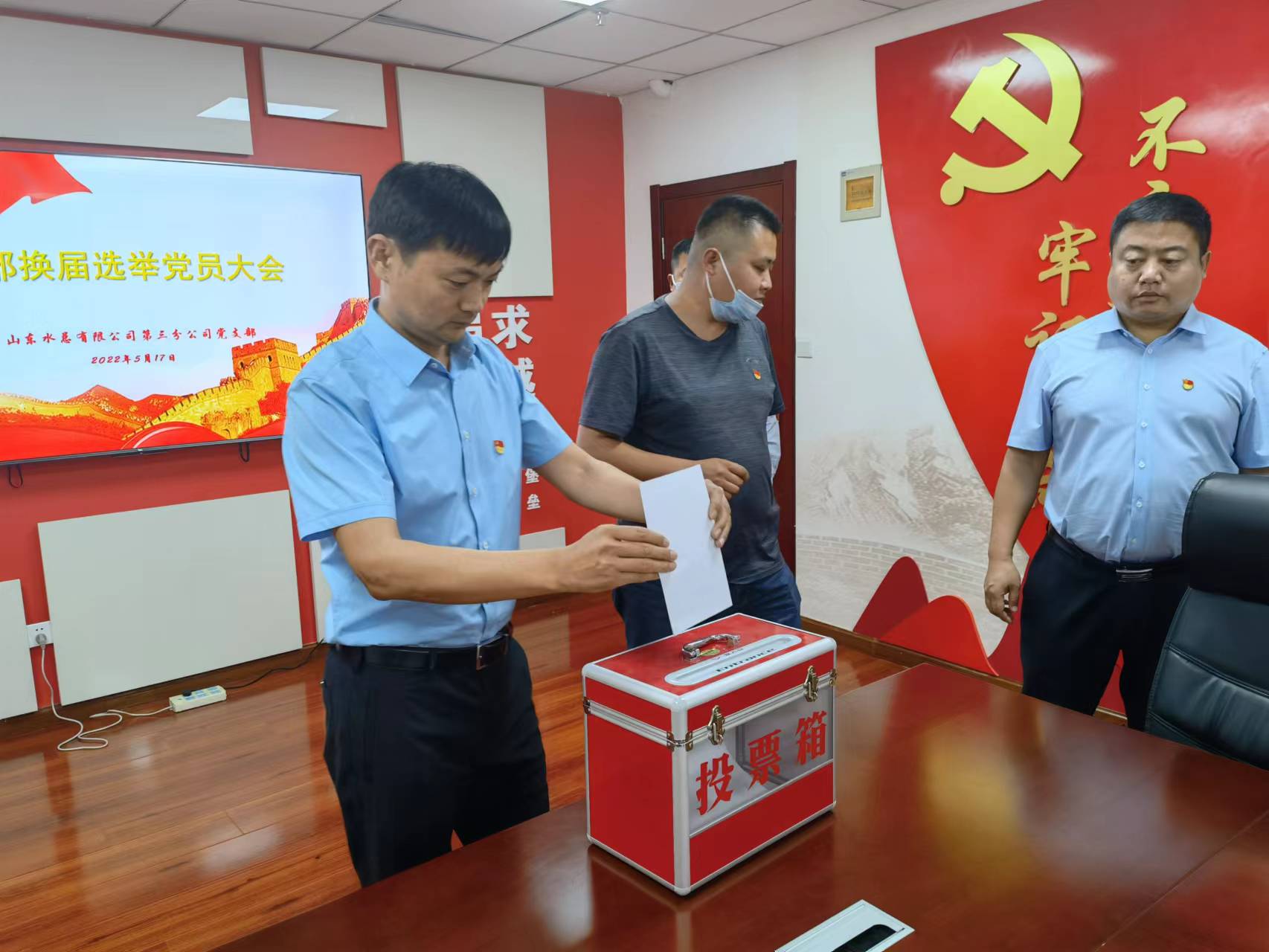 5月17日下午,第三分公司黨支部召開黨員大會進行支部換屆選舉。會議嚴格按照《中國共產黨章程》的規定,審議通過了上屆黨支部工作報告、表決通過了大會選舉辦法、候選人名單及監票人計票人名單,在充分醞釀的基礎上,采用無記名投票方式等額選舉徐浩同志為新一屆黨支部副書記。在肯定三年來支部工作取得成績的同時,也深刻認識到面對新的形勢和新的任務、對上級黨組織要求和群眾的期望方面還存在很大差距。