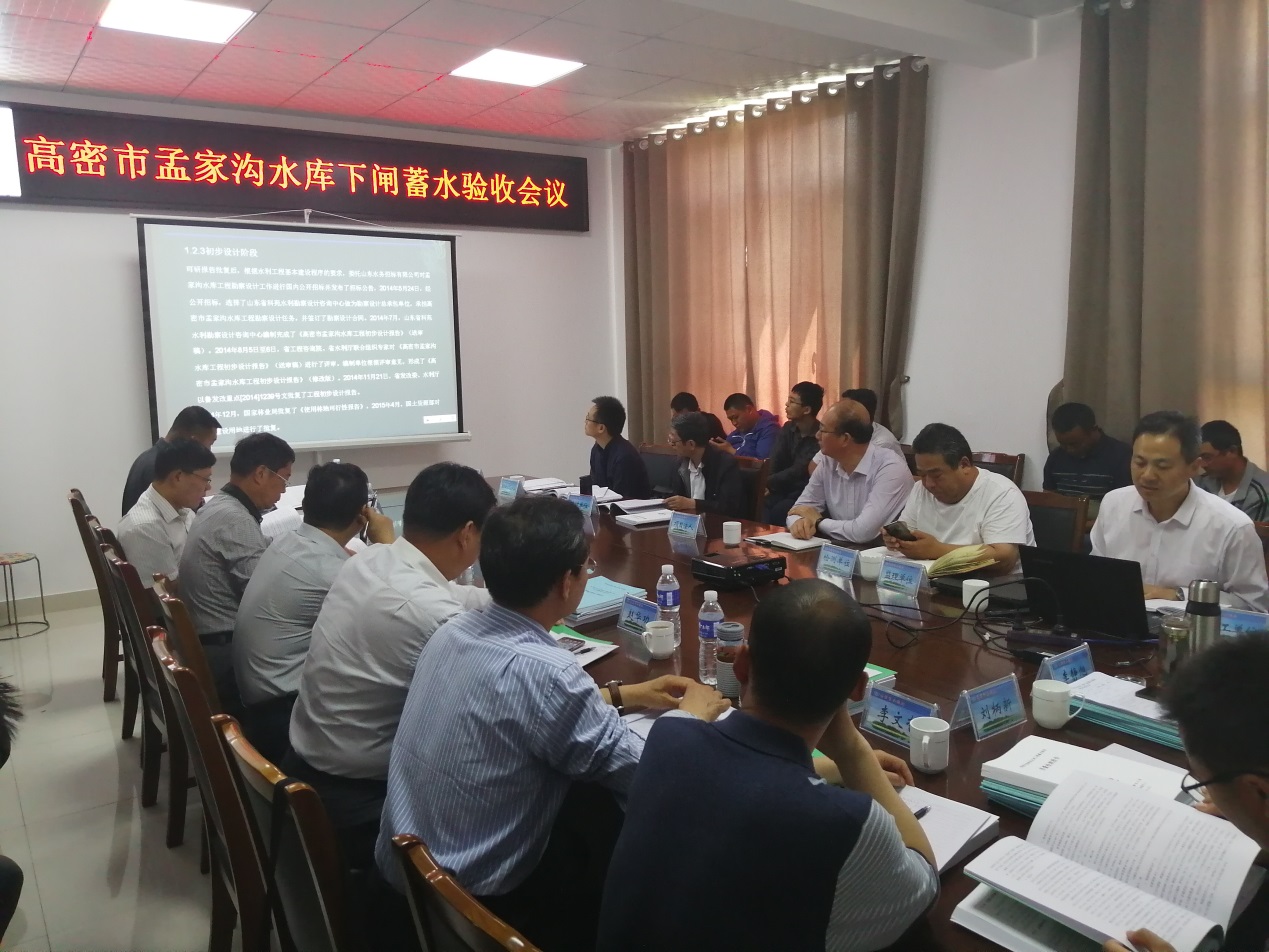 2019年5月21日,濰坊市水利局在孟家溝水庫管理局主持召開了高密市孟家溝水庫工程下閘蓄水階段驗收會議。工程項目建設相關(guān)單位及特邀專家參加了會議。