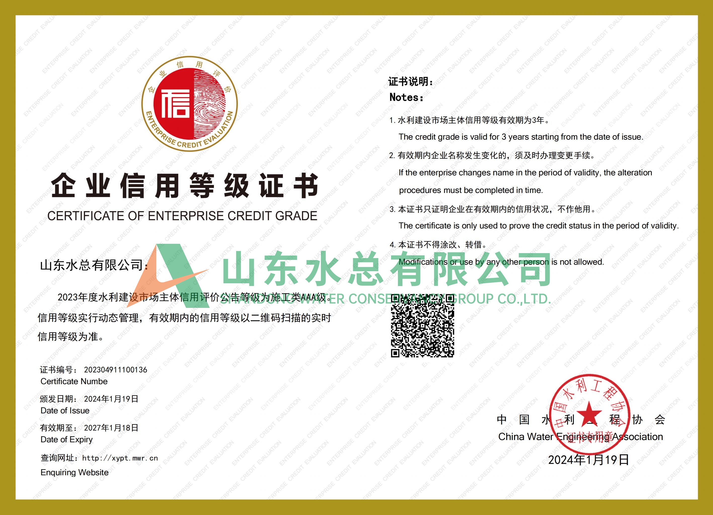 AAA信用等級(jí)證書