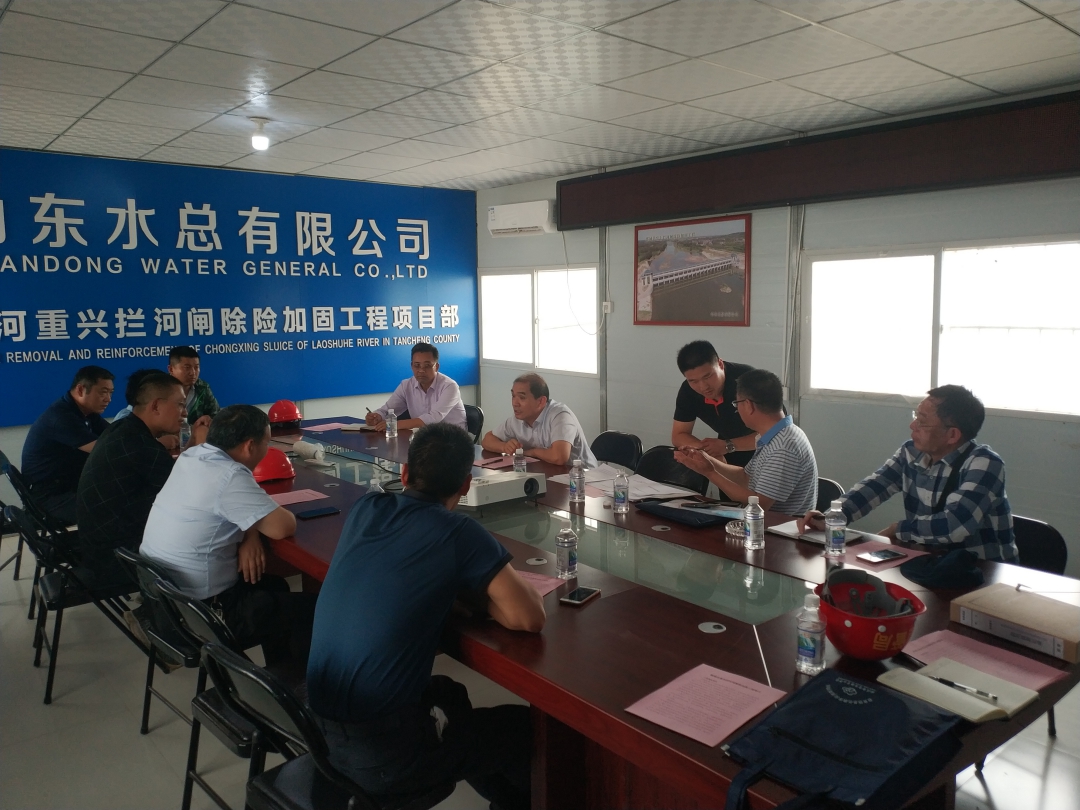 2020年6月1日,山東省水利廳總工程師、二級巡視員徐希進一行蒞臨郯城縣重興攔河閘除險加固工程現(xiàn)場調研指導工程防汛度汛工作。郯城縣水利局、河道局,山東水總重興閘項目部主要領導參與了調研工作。