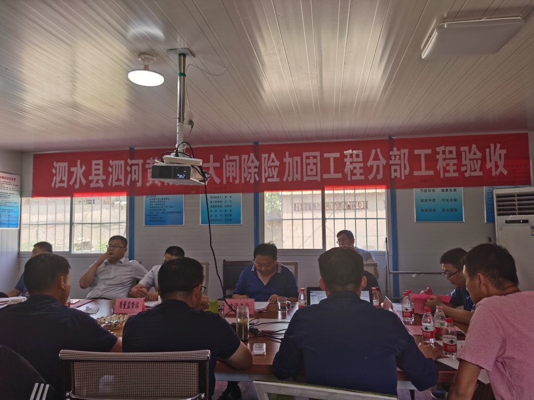 2020年6月29日,泗水縣水利工程建設管理處主持召開了泗水縣泗河黃陰集大閘除險加固工程施工1標分部工程驗收會議。驗收工作組通過聽取施工單位工程建設和單元工程質量評定情況的匯報,檢查相關工程資料,同意通過上游聯結段、地基防滲及排水、閘室段和下游聯結段4個分部工程的驗收。驗收工作組一致給予“山東水總不愧是水利鋼軍”的好評!