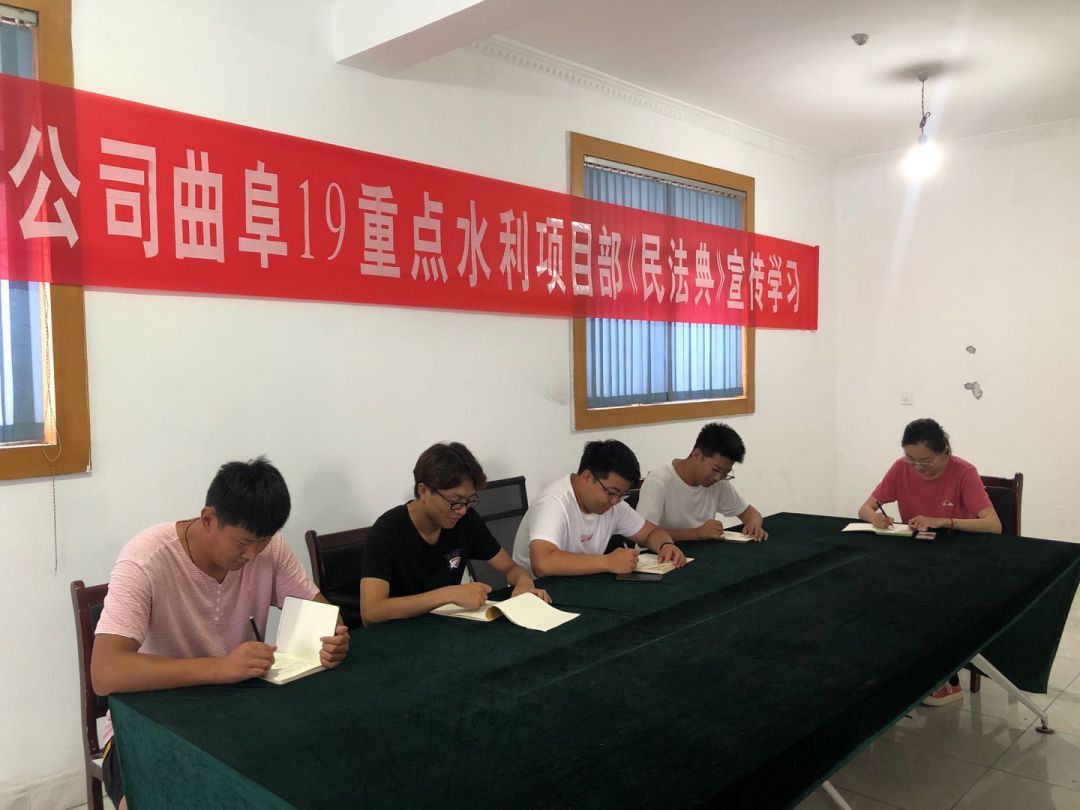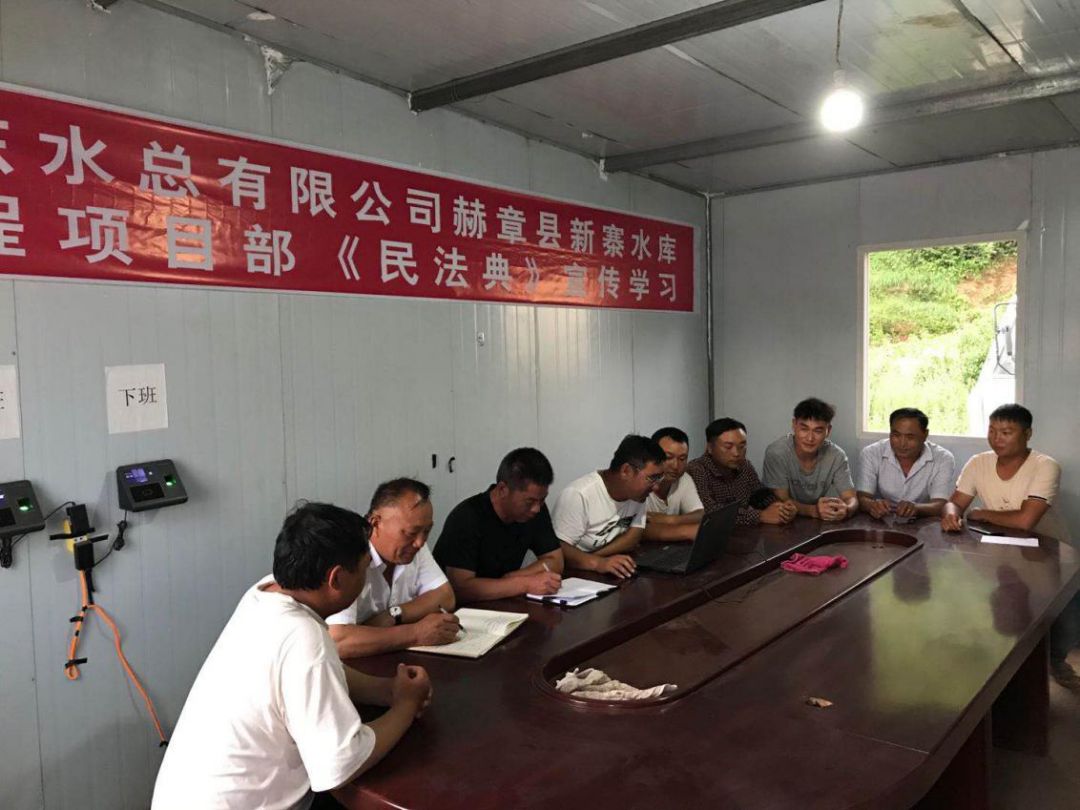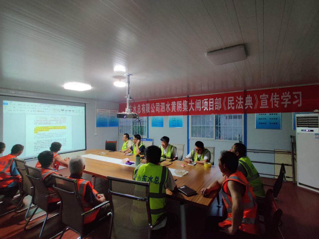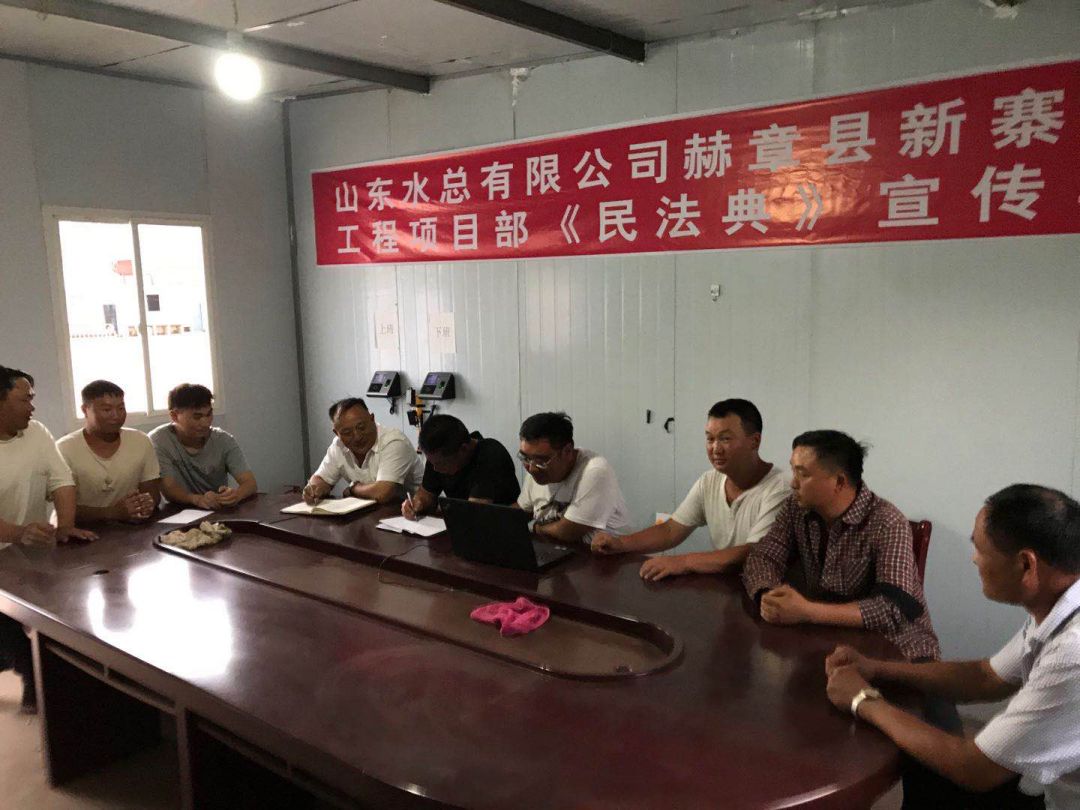 為響應總公司法務與清收辦公室組織的“《民法典》宣傳月”活動, 7月23日晚上,泗水縣黃陰集大閘除險加固工程項目經理部在工地會議室召開《民法典》學習宣貫會議、2020年7月25日,赫章縣新寨水庫工程項目部全體成員在會議室進行《民法典》宣傳學習、曲阜2019年重點水利建設項目施工 一標段在2020年7月28日進行《民法典》學習、平塘縣擦耳巖水庫工程項目2020年7月29日進行《民法典》學習、宣貫情況匯報如下: