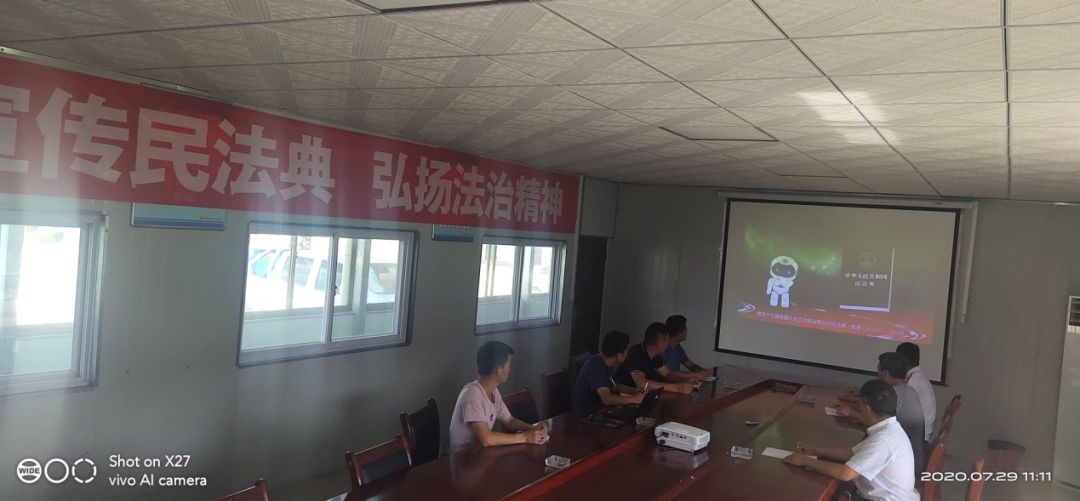 全體項目部管理人員及現場施工班組長參加了宣貫會議,會議上對《民法典》的學習要求進行宣貫及解讀。會上,參會人員共同學習了新民法。以投影儀投放及微信轉發的形式進行了系統的學習,通過這次集體學習提高了項目部全體人員的法治意識。