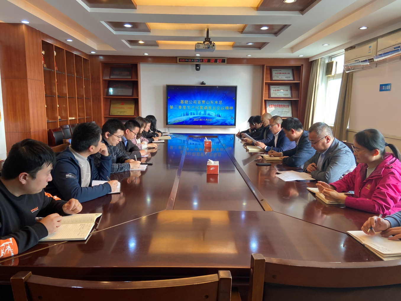 11月3日下午,基礎工程有限公司在七樓會議室召開第三季度生產(chǎn)經(jīng)營調(diào)度會議暨宣貫會議??偨?jīng)理朱兆同主持會議并講話,公司駐濟人員參加了會議。