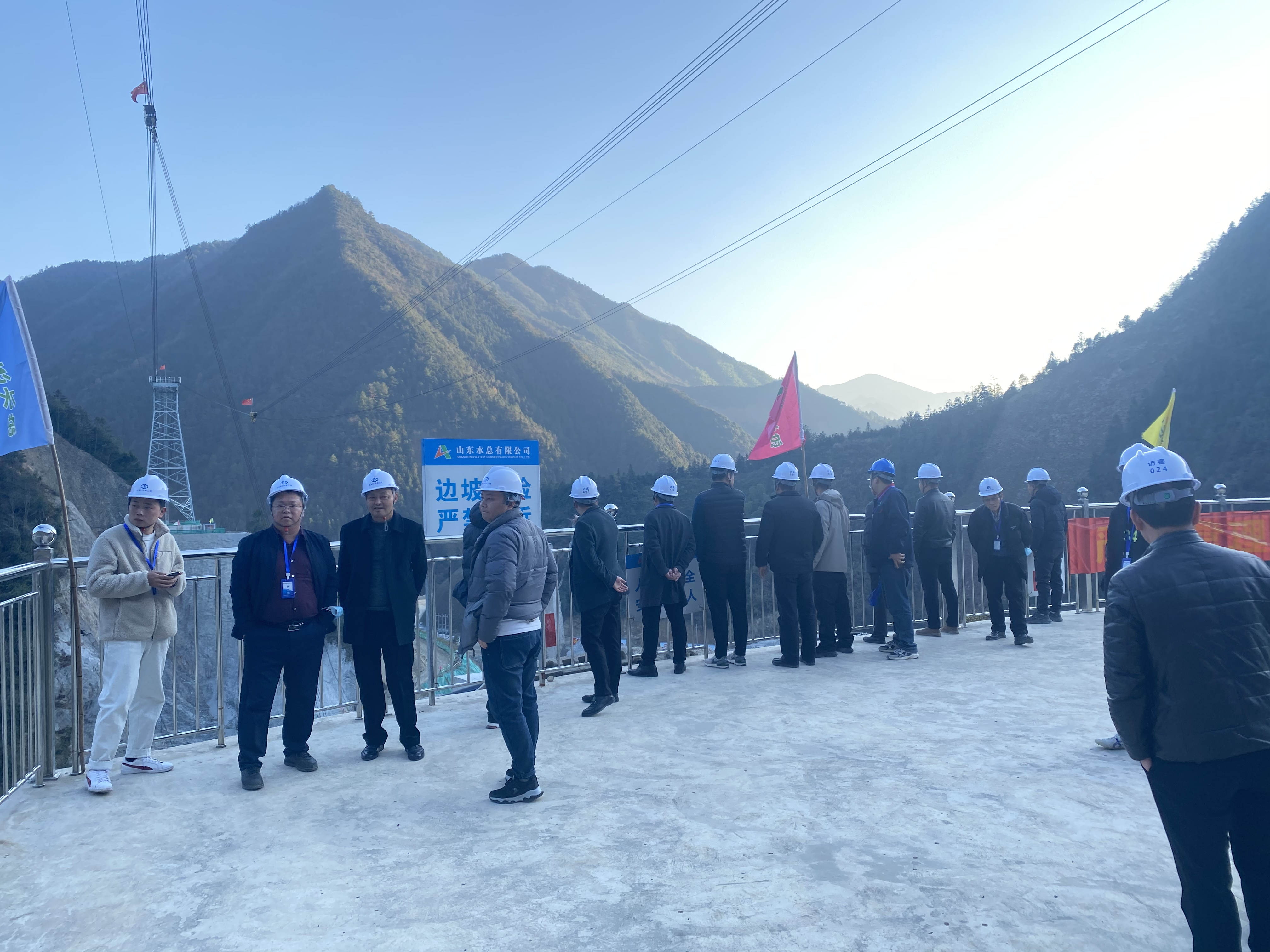 12月4日,遂昌縣水利局黨組副書記、副局長張水明,總工孟偉烽等一行十三人到臨安區(qū)雙溪口水庫工程參觀指導(dǎo)工作。杭州魯潤公司副總經(jīng)理孟天琦及相關(guān)人員陪同參觀了工程施工現(xiàn)場和項目標(biāo)準(zhǔn)化營區(qū)。
