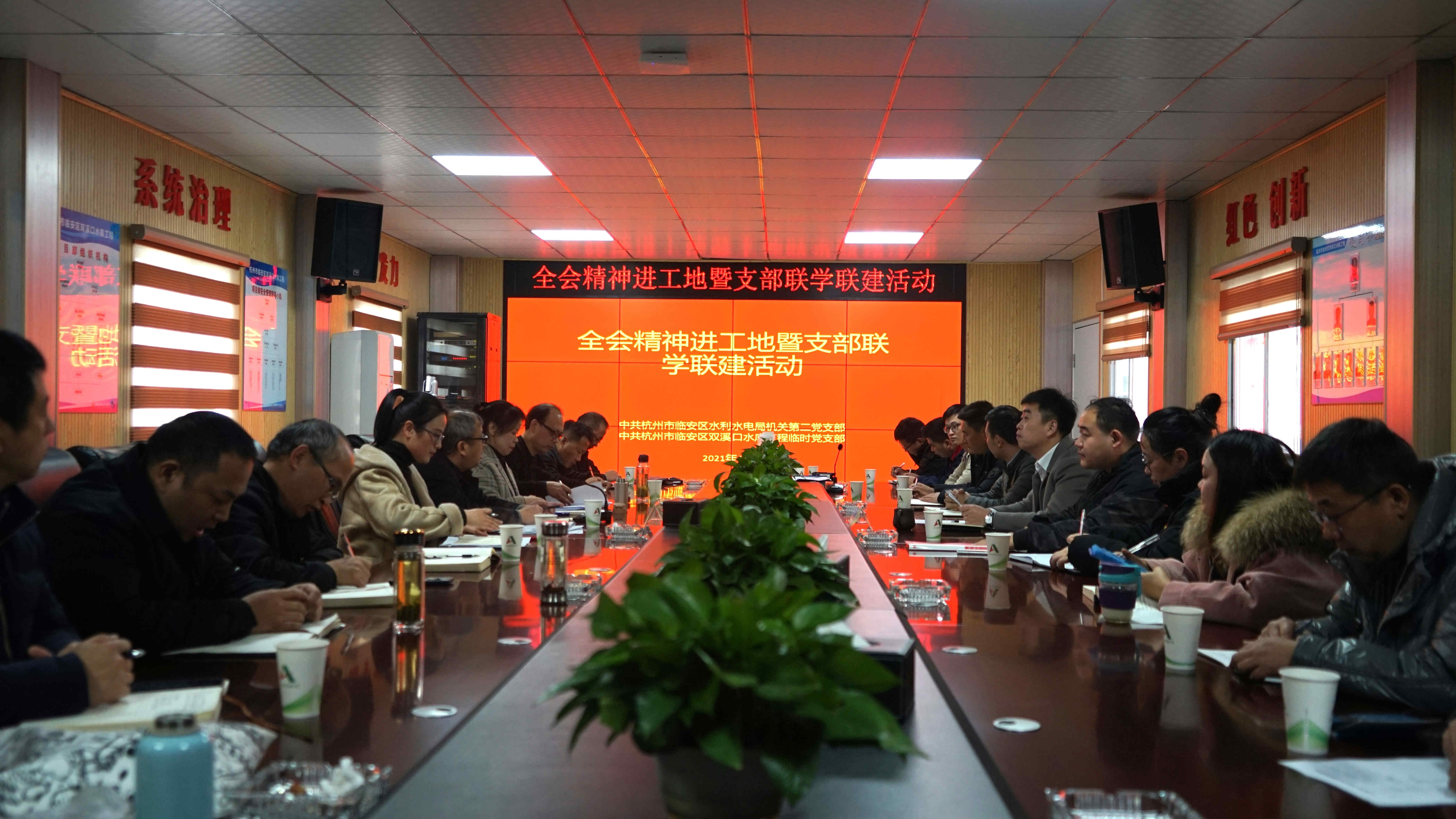 12月24日,杭州市臨安區雙溪口水庫工程臨時黨支部與杭州市臨安區水利水電局機關第二黨支部在雙溪口水庫項目部舉辦了六中全會精神進工地暨支部聯學聯建活動。