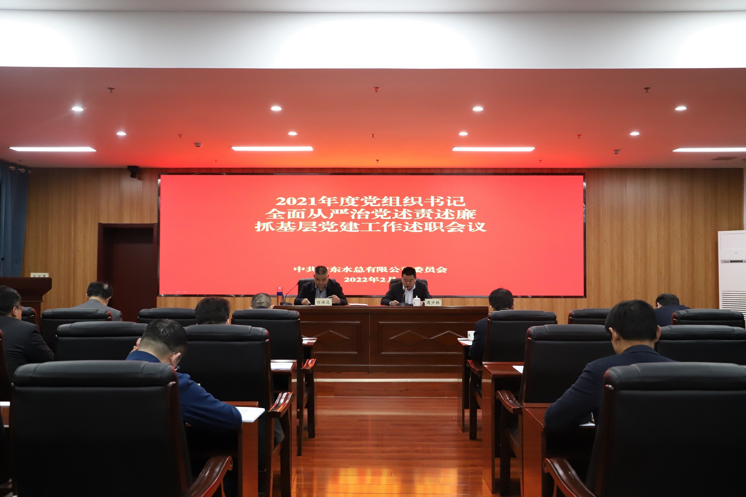 2月24日,公司黨委在濟南總部召開2021年度黨組織書記全面從嚴治黨述責述廉和抓基層黨建工作述職評議會議。公司黨委副書記、工會主席周少林主持會議,黨委書記、董事長劉深遠作點評講話。公司領導班子成員、權屬單位黨支部書記和黨員代表共30余人參加會議。