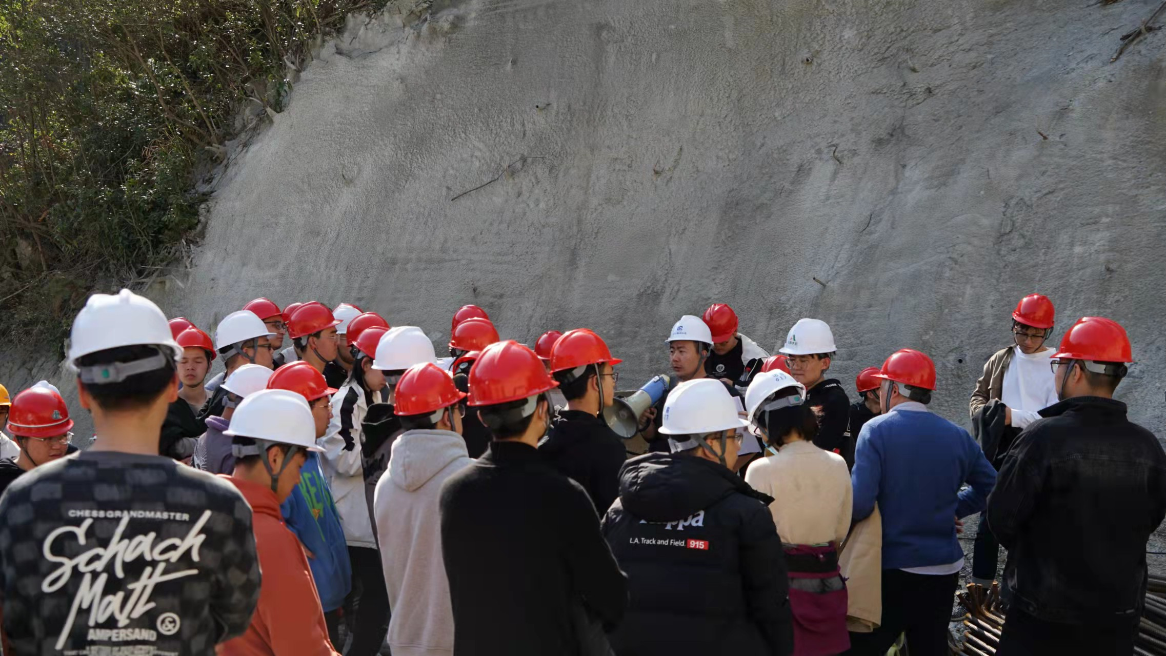 杭州魯潤公司副總工程師張仰保組織各參建單位主要管理人員給學生們作了工程建設報告、安全知識宣講。并帶領同學們現場觀摩學習,對大壩的澆筑方式、引水洞內部結構、發電廠房建造、工地測量放樣、現場試驗室等方面進行了專業、詳細的講解。