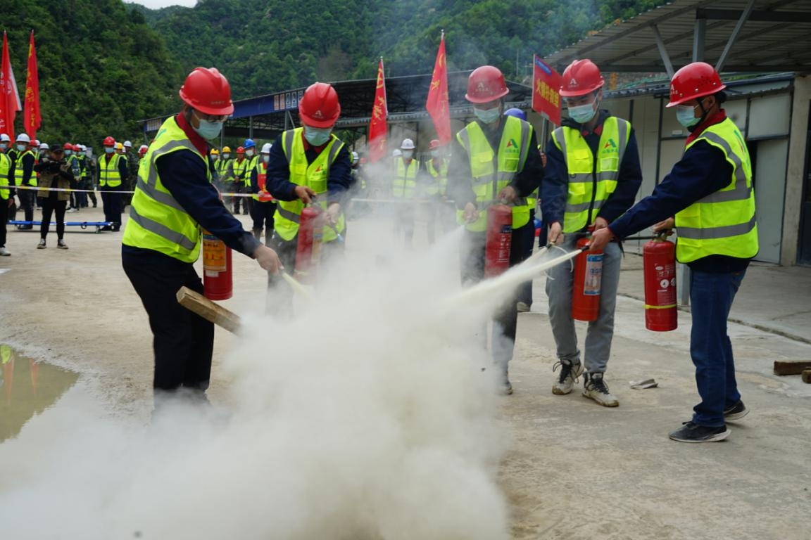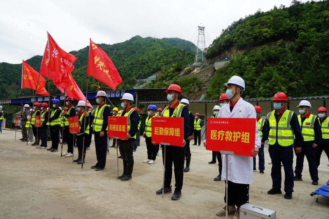 浙江省2022年汛期即將來臨,為了確保工程安全度汛、提高參建人員風險防范意識和應急處置能力,4月14日上午,杭州魯潤公司組織杭州雙溪口水庫工程各參建單位人員開展2022年防汛防臺和消防應急救援演練。杭州市水利質監中心、臨安區水利水電局、清涼峰鎮人民政府、雙溪口水庫工程指揮部領導到場觀摩指導。