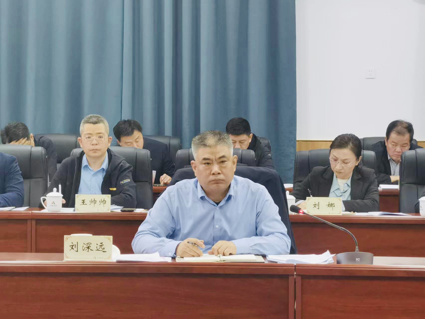 公司黨委書記、董事長劉深遠代表公司歡迎周新波一行蒞臨指導,并表示在今后的工作中將繼續保持思想統一、夯實責任落實、強化作風轉變,為推動山東水總高質量發展不懈努力。