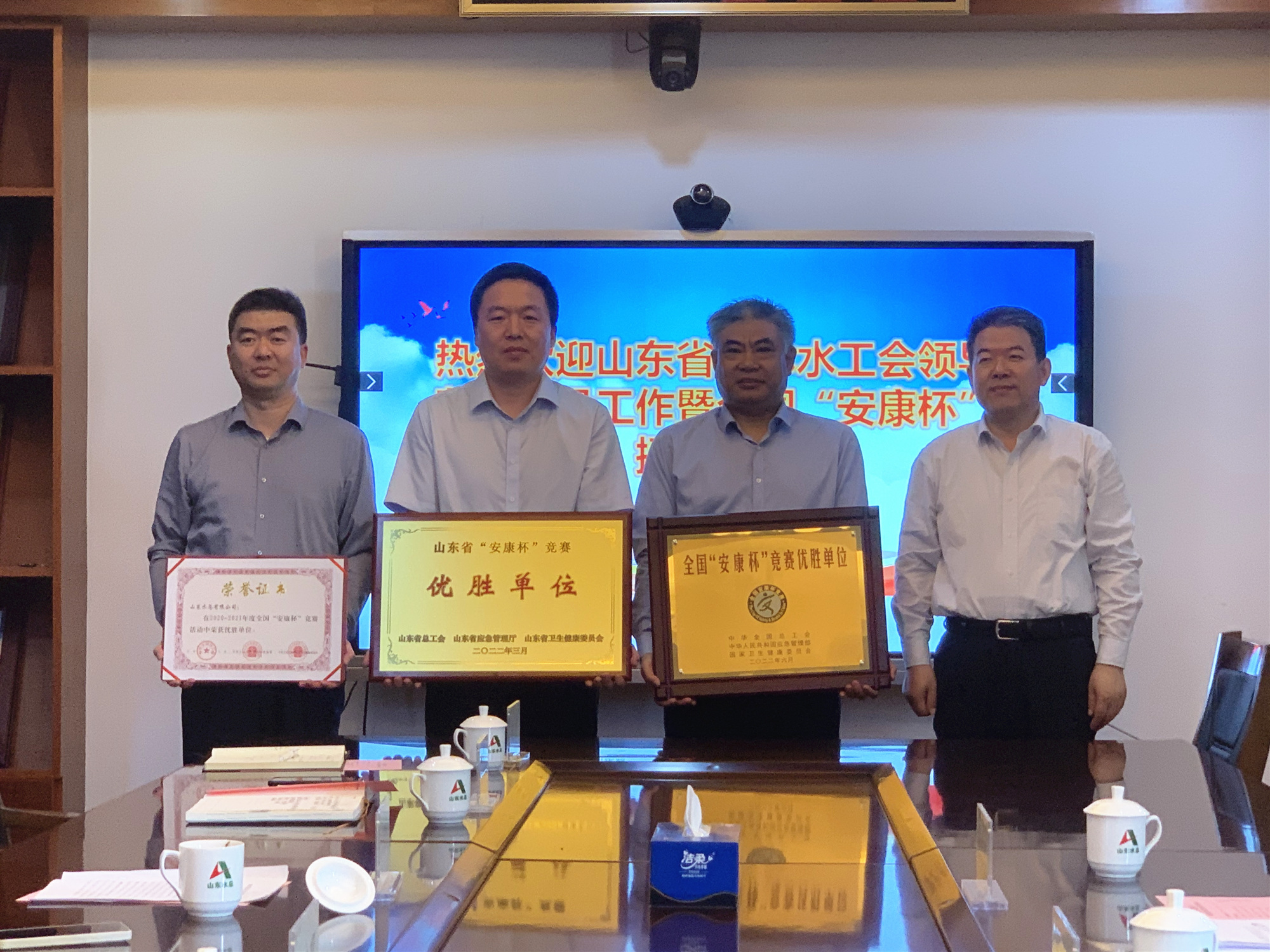 5月12日,公司舉行了全國、山東省“安康杯”競賽優(yōu)勝單位授牌儀式。省農(nóng)林水工會主席張志剛、主任科員吳開明,公司黨委書記、董事長劉深遠(yuǎn),黨委副書記、董事、總經(jīng)理靳文碩,黨委委員、副總經(jīng)理付海華,黨委組織部、安全管理部相關(guān)人員參加儀式活動。