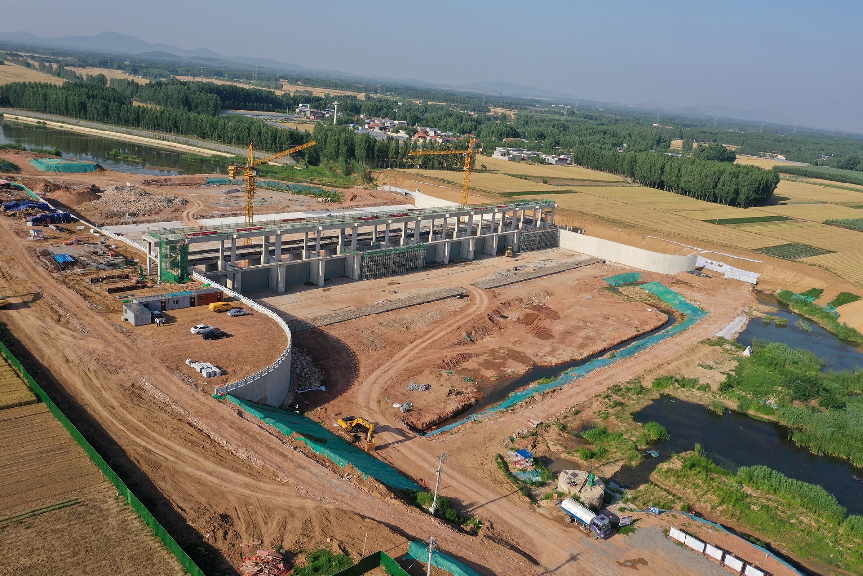 泗河岳陵攔河閘于2022年9月13日開工建設,工程采用分期導流,分兩期施工。項目部克服疫情防控、冬季施工、遷占緩慢等不利因素影響,通過優化施工組織設計,調整施工方案,搶抓工期。順利完成2023年汛前全部施工任務。有力保障了工程度汛和河道行洪安全。