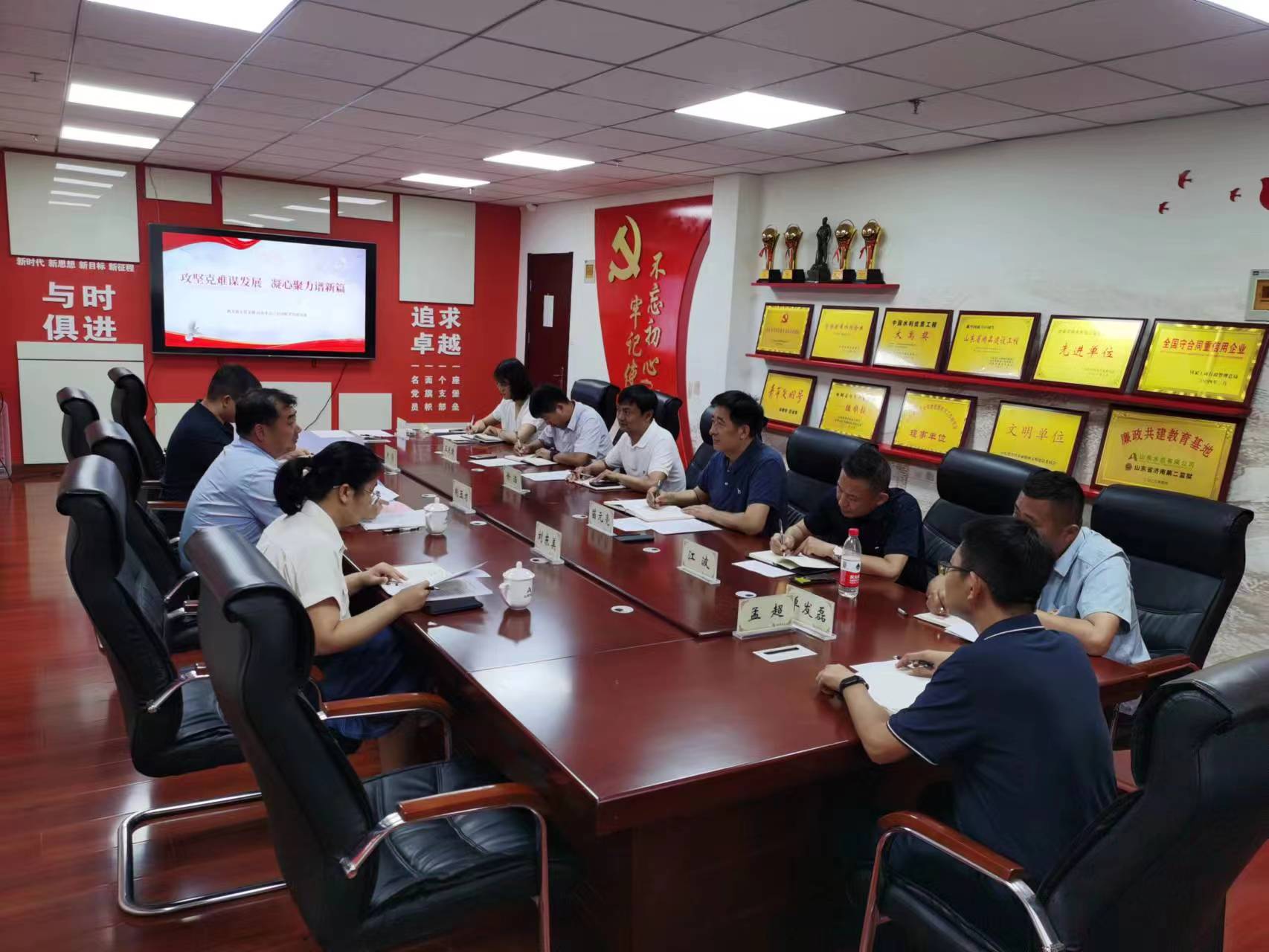 6月19日,路橋股份公司總經(jīng)理助理、安全總監(jiān)荊玉才一行到訪,代表山東高速路橋集團(tuán)股份有限公司機(jī)關(guān)第五黨支部與山東水總第三分公司黨支部進(jìn)行聯(lián)學(xué)共建,開展“攻堅克難謀發(fā)展 凝心聚力譜新篇”主題黨日活動,公司科技創(chuàng)新發(fā)展部相關(guān)人員列席參加。