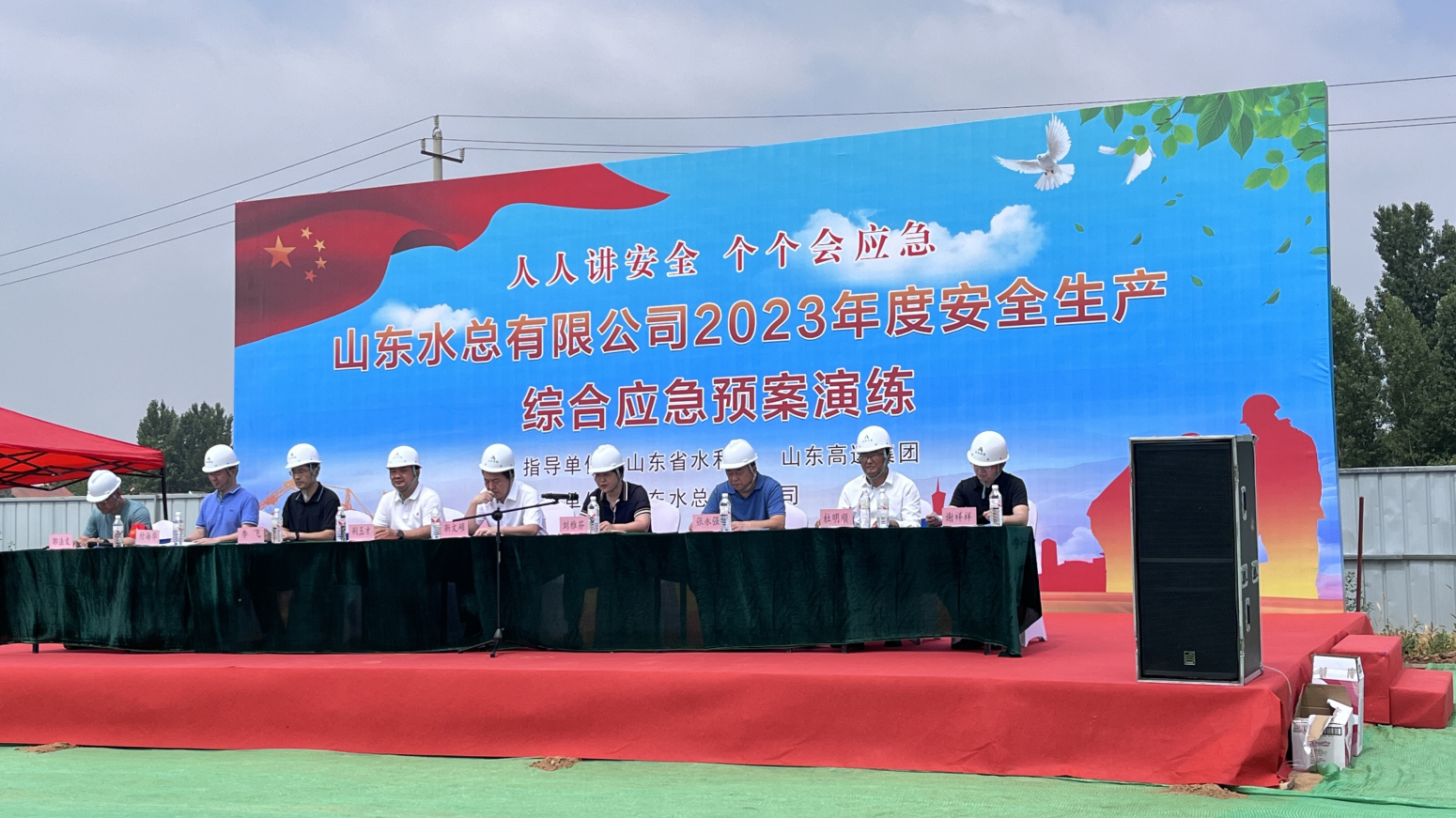 6月20日上午,公司在泗水縣岳陵攔河閘施工現場開展2023年安全生產綜合應急演練。省水利廳監督處副處長劉雅芬、泗水縣水利局局長張永強、副局長杜明順,股份公司安全總監荊玉才、安全管理部部長李飛等領導蒞臨現場觀摩指導,公司黨委委員、副總經理付海華主持演練,黨委副書記、總經理靳文碩致辭。