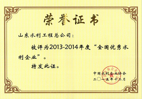 公司榮獲2013-2014年度“全國優秀水利企業”