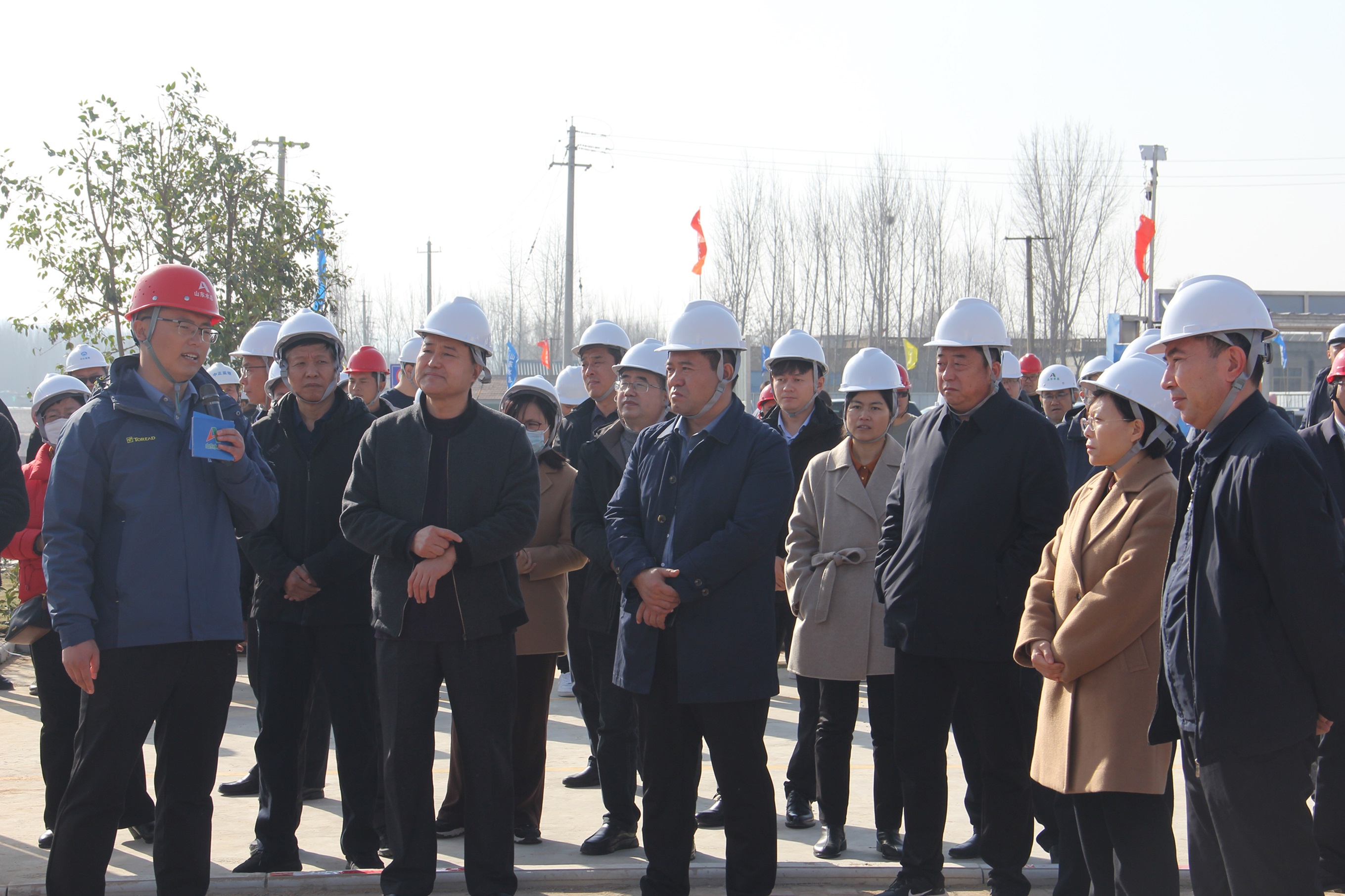 12月8日,全省水利安全生產風險管控“六項機制”建設現場觀摩培訓在泗水縣召開,公司承建的泗水縣岳陵攔河閘工程作為全省唯一在建工程迎接了此次觀摩活動。山東省水利廳黨組成員、副廳長尹正平,濟寧市人民政府副市長白平和,山東省水利廳總經濟師郭忠,濟寧市城鄉水務局黨組書記、局長劉繼慧,泗水縣委書記趙鑫,全省16市水行政主管部門以及省流域中心、省水文中心、省調水中心、干線公司分管安全生產的負責同志,廳監督處、省水科院等100余人參加觀摩會。公司黨委書記、董事長劉深遠、安全總監郭法文等一行陪同觀摩。