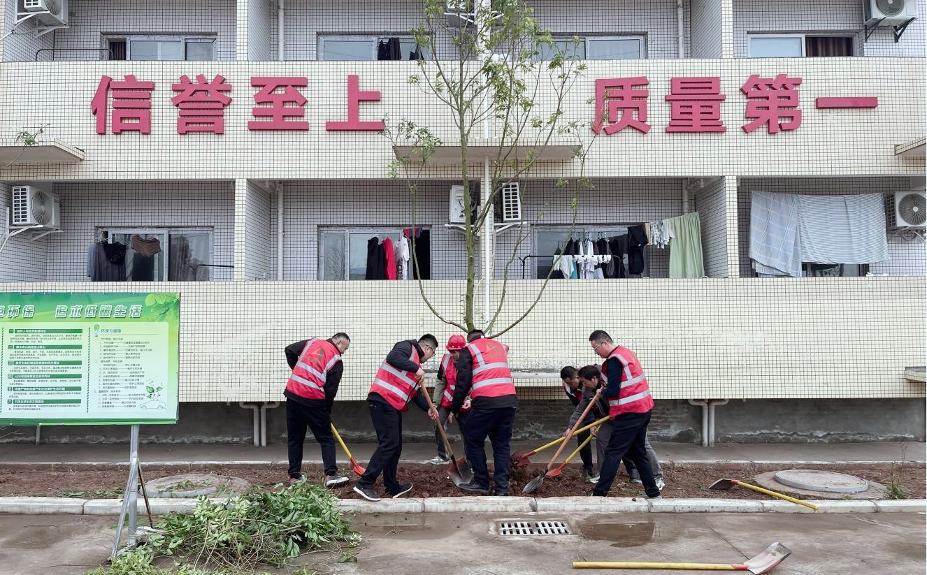 活動現(xiàn)場,項目部黨員充分發(fā)揮先鋒模范作用,身先士卒搬運樹苗,團(tuán)員青年們也個個熱情高漲、干勁十足。大家分工明確,互相協(xié)作,一挖一鏟,一揮一種,精心栽培,用心澆灌,踐行了“綠水青山就是金山銀山”的理念,美化了項目駐地,營造了綠色舒適的工作生活環(huán)境,展現(xiàn)了企業(yè)良好形象。