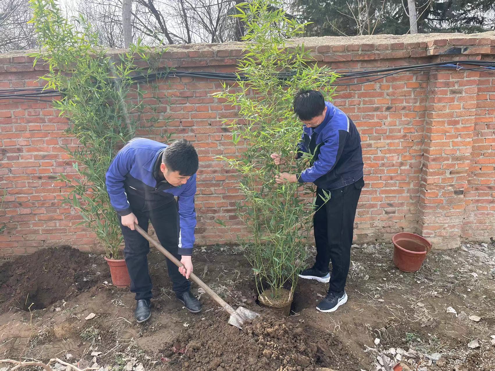 曲阜駐地黨支部黨員、入黨積極分子熱情昂揚,大家分工協作,配合默契,揮鍬鏟土、扶樹填坑、踏土夯苗、培土澆水,道道工序規范嚴格,認真細致地栽種每一棵樹苗,經過辛勤勞作,為文化長廊增添了濃濃綠意。