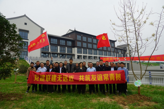 在植樹現場,各項目管理人員、一線人員互相配合,合力完成了紫薇、桂花、山玉蘭、垂絲海棠等樹種的種植。本次活動,雙溪口水庫臨時黨支部特意從水庫帶來了“臨安山泉”澆灌大家共同種植的樹木,澆灌了各方在黨建聯建中結成的深厚情誼。三位支部書記共同為“黨建聯建友誼林”揭牌,見證了聯建工作的新起點。活動結束后,大家共同參觀了新陡門閘站,并赴石門水庫現場參觀交流水庫下閘蓄水等工作。
