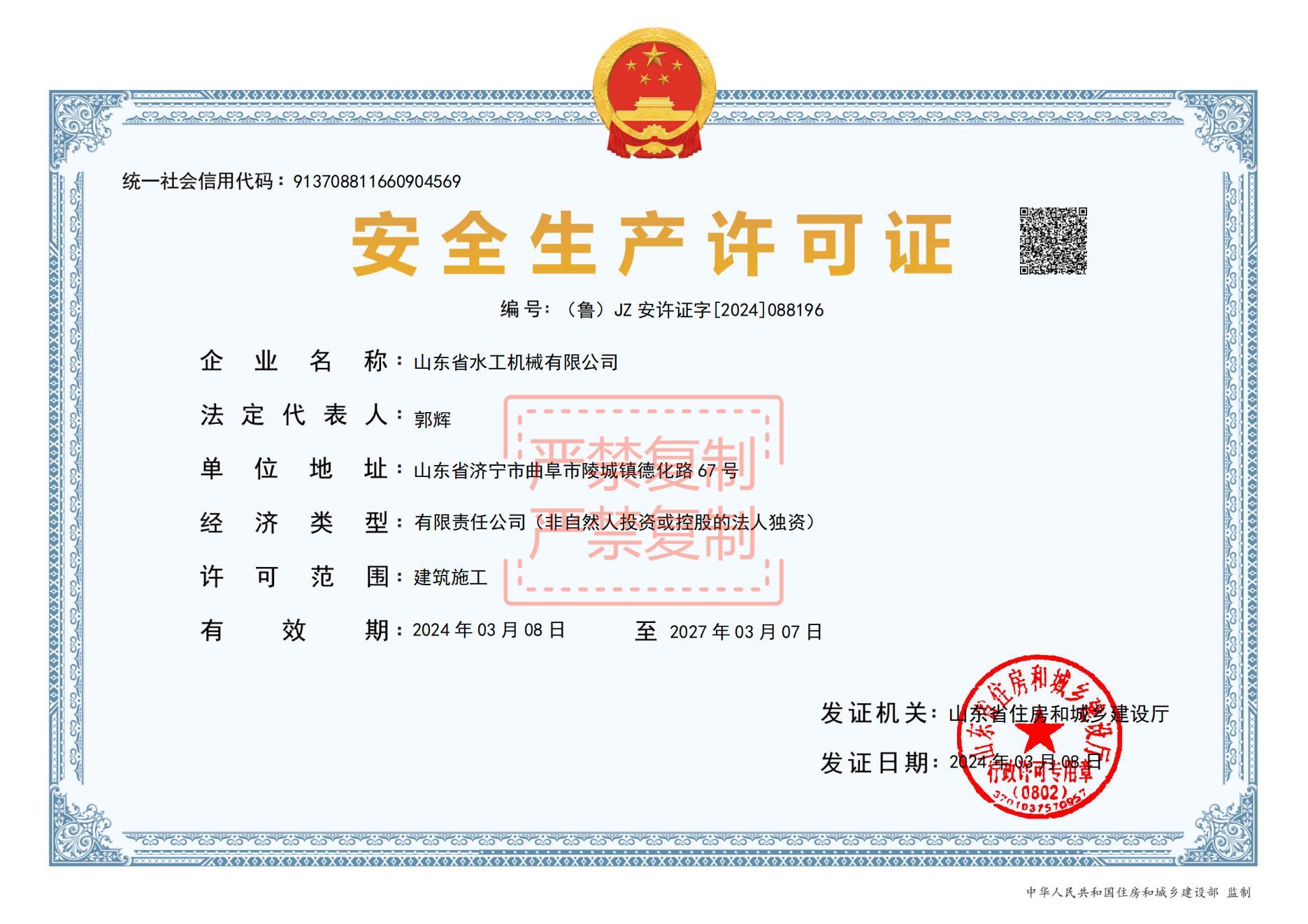 一季度,水工機(jī)械公司制定《山東省水工機(jī)械有限公司重要事項(xiàng)督辦管理辦法》對公司年度及日常各項(xiàng)重要事項(xiàng)進(jìn)行督辦并及時(shí)調(diào)整工作計(jì)劃和措施,確保公司各項(xiàng)工作穩(wěn)步推進(jìn)。2023年12月底取得鋼結(jié)構(gòu)工程專業(yè)承包貳級(jí)資質(zhì),2024年3月7日取得安全生產(chǎn)許可證,為公司進(jìn)一步拓展業(yè)務(wù),持續(xù)保障安全生產(chǎn)打下基礎(chǔ)。