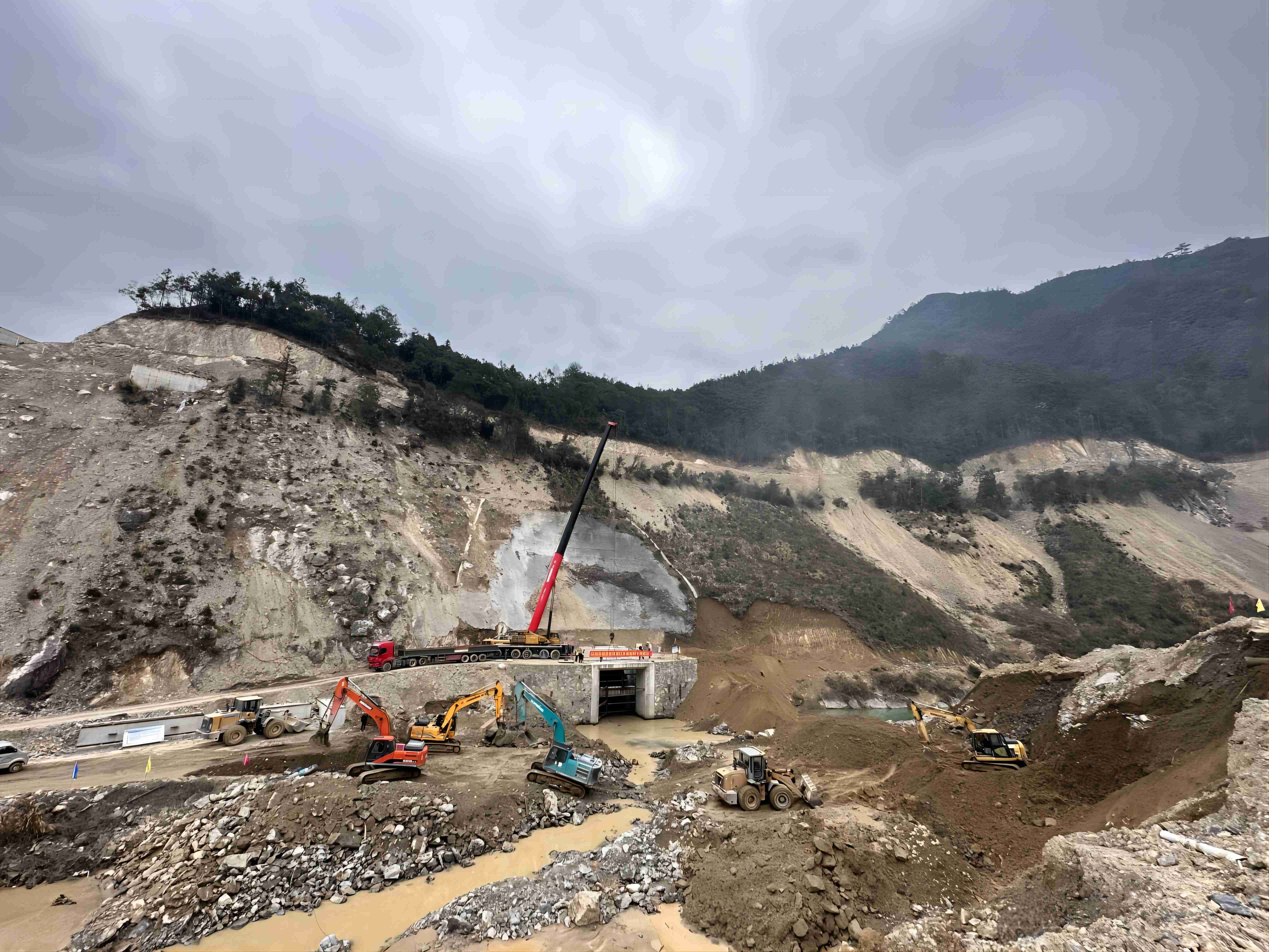 導流隧洞布置在大壩右岸山體內,全長207.17米,進口高程268.00米,出口高程263.20米,斷面為7米×7米城門洞型,永久封堵體長度為25米。3月14日水庫下閘蓄水后,項目部按照既定施工方案,采取“晝土建夜灌漿”科學的交叉作業模式,投入人員、材料、機械迅速就位,先后克服空間受限、工期緊張、施工危險系數高、混凝土水化熱等諸多挑戰,在有限的時間和施工空間里,歷時一個月完成了導流隧洞永久封堵體混凝土的施工。目前水庫水位已蓄至310.8m高程,導流隧洞封堵的完成,為豐水季節發電收益提供了堅實保障,切實貫徹了早投產、早收益的建設口號。