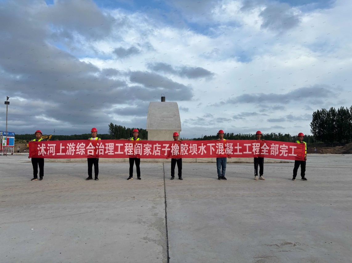第七分公司沭河上游綜合治理工程閻家店子橡膠壩水下混凝土工程全部完工