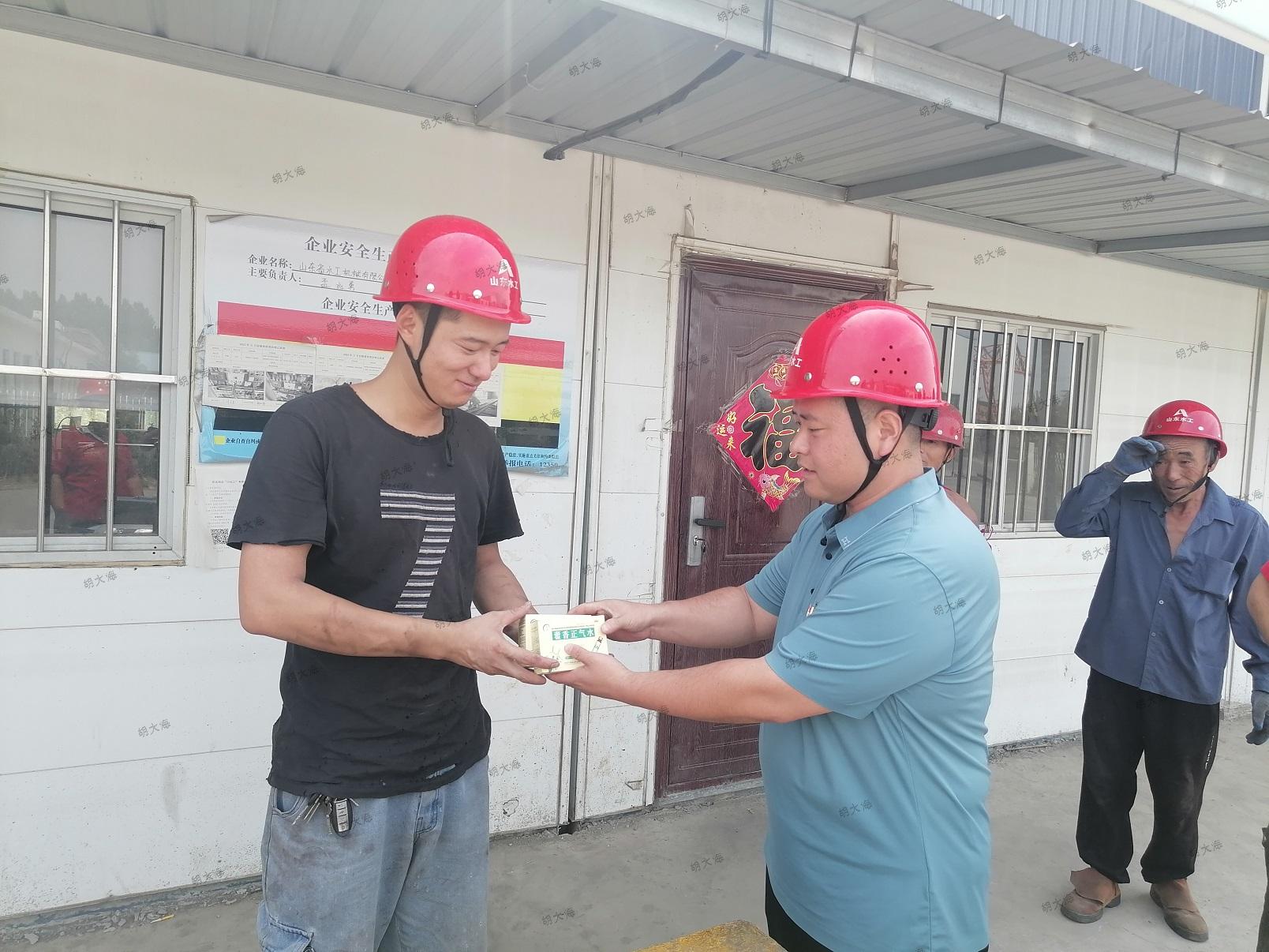 炎炎夏日,濃濃牽掛。為保障廣大農民工的職業安全與身心健康,做好農民工防暑度夏工作,近日,水工機械公司組織開展對農民工慰問關懷活動。