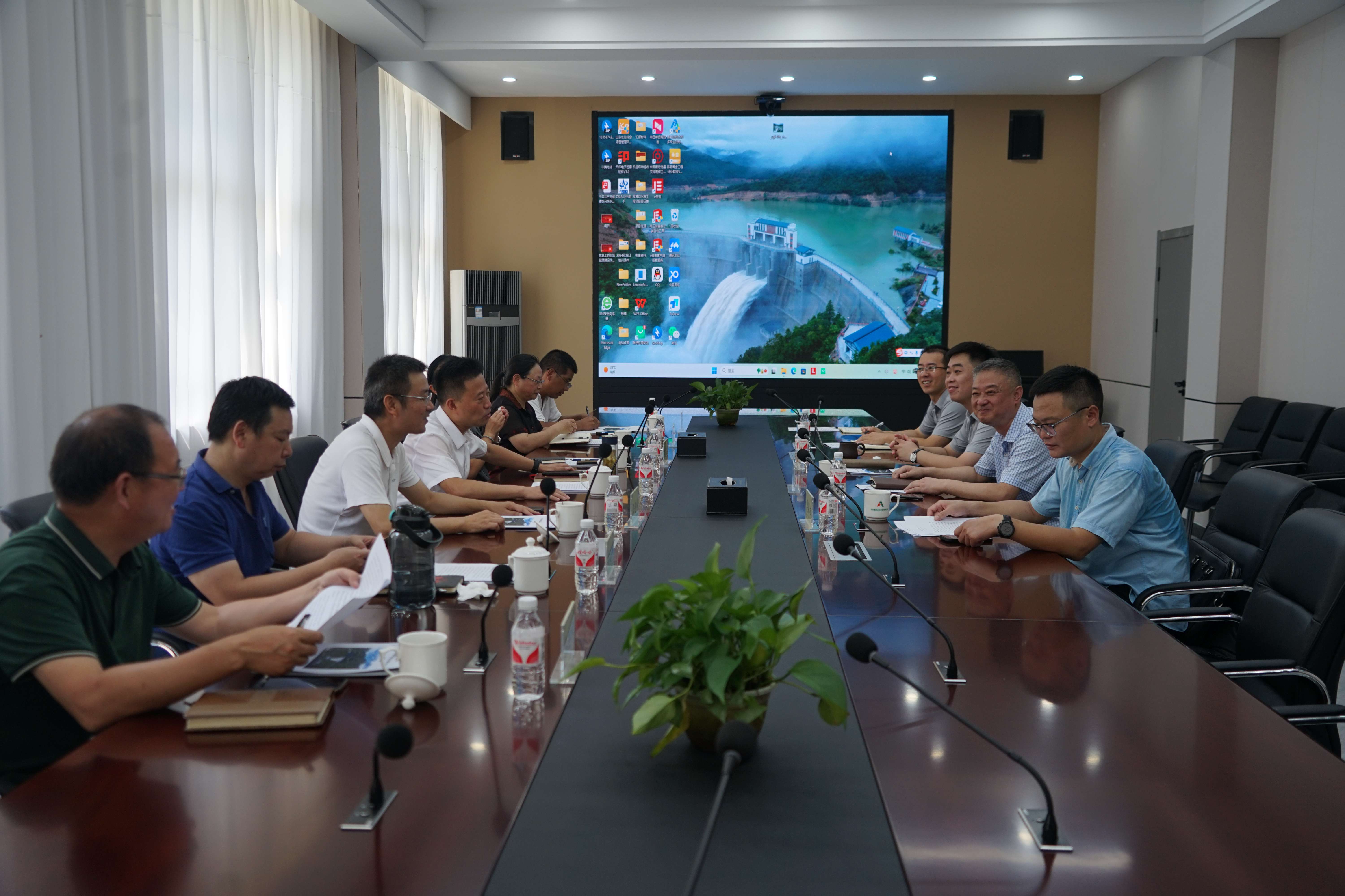 何建中一行來到現場認真觀摩了雙溪口水庫的整體情況,了解水庫重力拱壩及各項樞紐建筑物指標。在隨后召開的座談會上,魯潤公司介紹了雙溪口水庫工程概況、建設歷程、運行管理等方面情況。臨安區水利局局長湯文卓就水庫的可研立項、招投標、行業管理、移民征遷等方面同考察組進行了深入的交流探討。何建中指出,雙溪口水庫的成功經驗對于徽州區水庫項目建設具有重要的學習借鑒價值,希望雙方加強協同合作,推動臨安區、徽州區水利事業高質量發展。