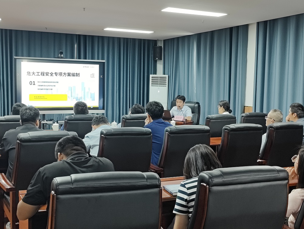 本次會議分為項目交流和專題知識培訓兩個環節。上午,聊城市茌平區水源置換項目、沂南縣岸堤水源工程等7個典型項目代表從項目特點、施工工藝、質量控制要點、質量控制措施、質量管理亮點、成本控制措施等方面,分享了管理經驗。下午,公司特別邀請了從事危大工程專項方案編制咨詢服務的講師進行授課,重點對高支模支撐體系、腳手架搭設、起重吊裝等危大工程專項施工方案編制進行講解,并應用安全計算軟件進行現場實操。
