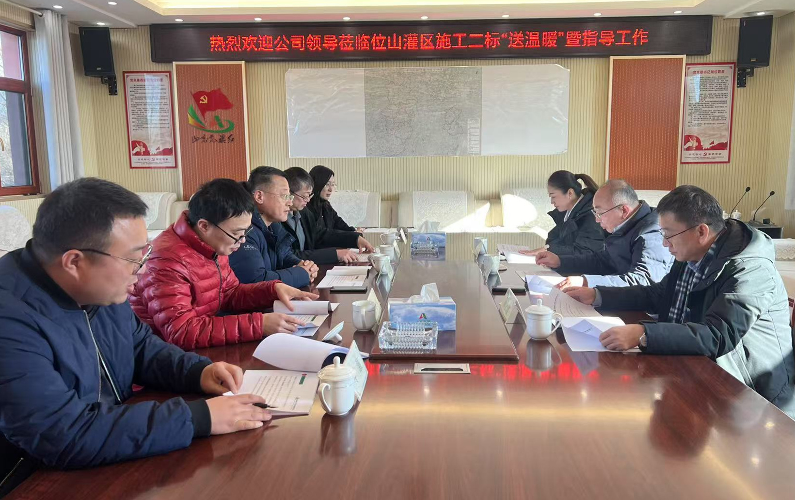 1月9日,路橋股份工會主席張子鑫等一行蒞臨二局有限公司位山灌區(qū)東昌府區(qū)灌域渠系配套建設(shè)工程二標(biāo),開展2025年“冬送溫暖”慰問活動。公司黨委副書記、工會主席王坤林、二局有限公司黨委書記、董事、總經(jīng)理王傳波陪同。