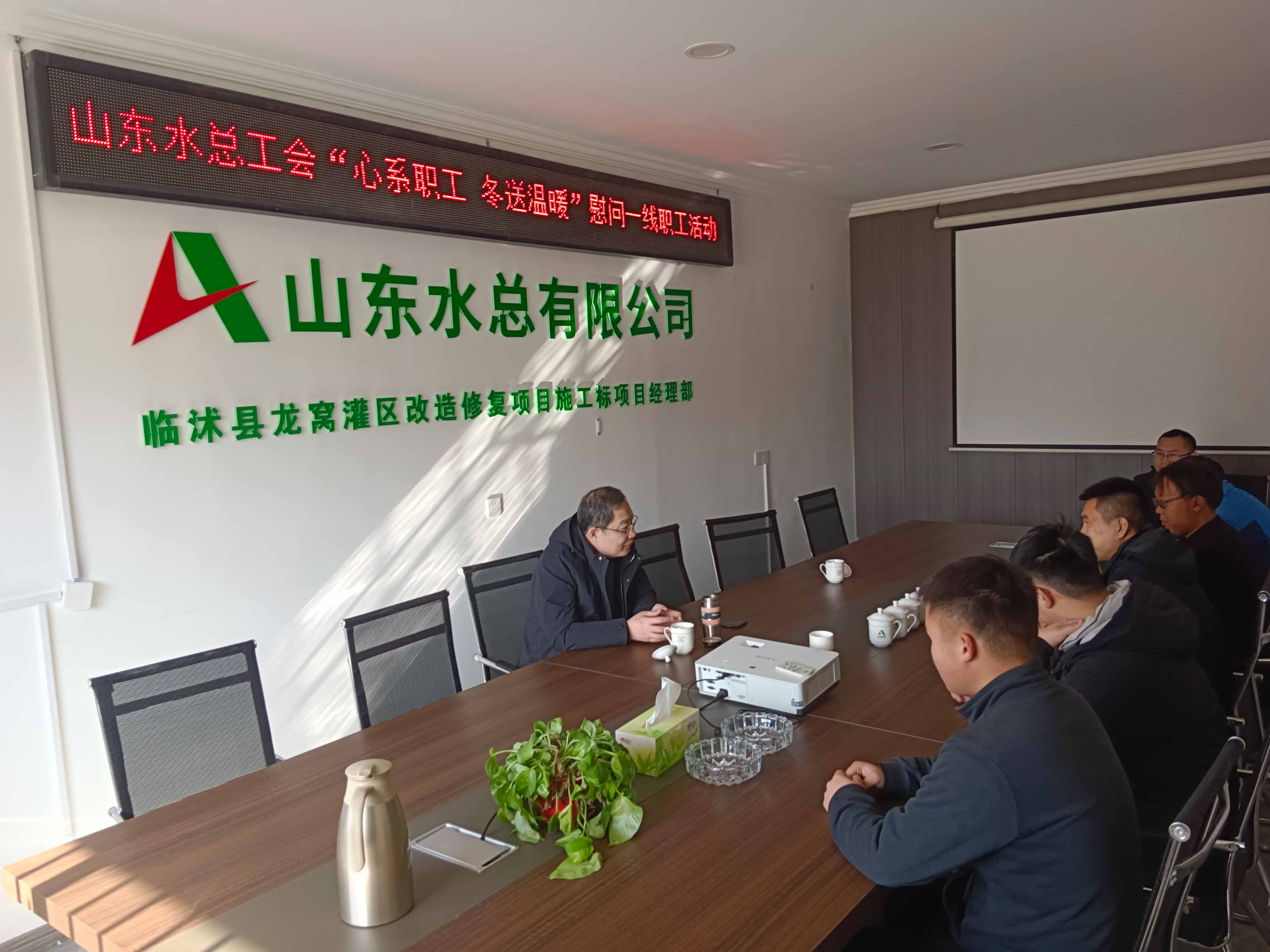 1月17日,公司黨委委員、副總經理杜貞義一行到第三分公司臨沭龍窩灌區改造維修項目開展“心系職工 冬送溫暖”慰問一線職工活動。