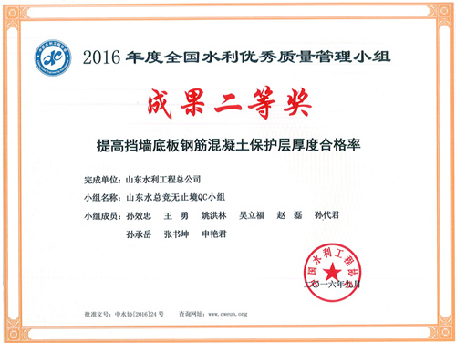 公司“竟無(wú)止境QC小組”榮獲2016年全國(guó)水利優(yōu)秀質(zhì)量管理小組