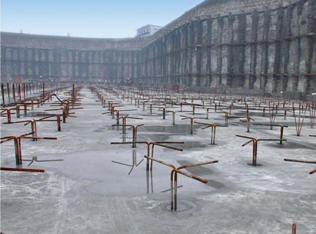 濟南市聚隆廣場基坑支護:抗浮錨桿,樁徑150mm,樁長12m,成樁7300余顆。