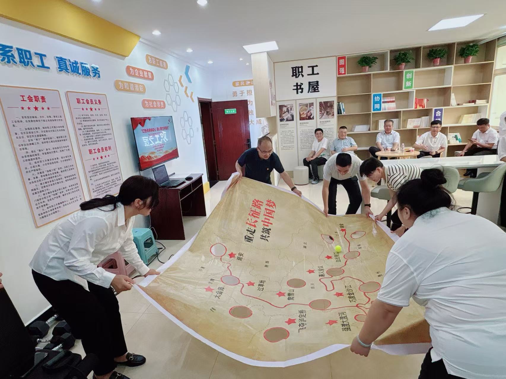 “踏尋長征印記,聚力闖關征途”環節以精心繪制的長征行軍路線圖為指引,帶領職工“重走”長征路。各小組爭分奪秒向“大會師”目標進發,每通過一個關卡都仿佛觸摸到那段波瀾壯闊的歷史,在協作闖關的過程中,深刻感悟長征精神的偉大內涵。
