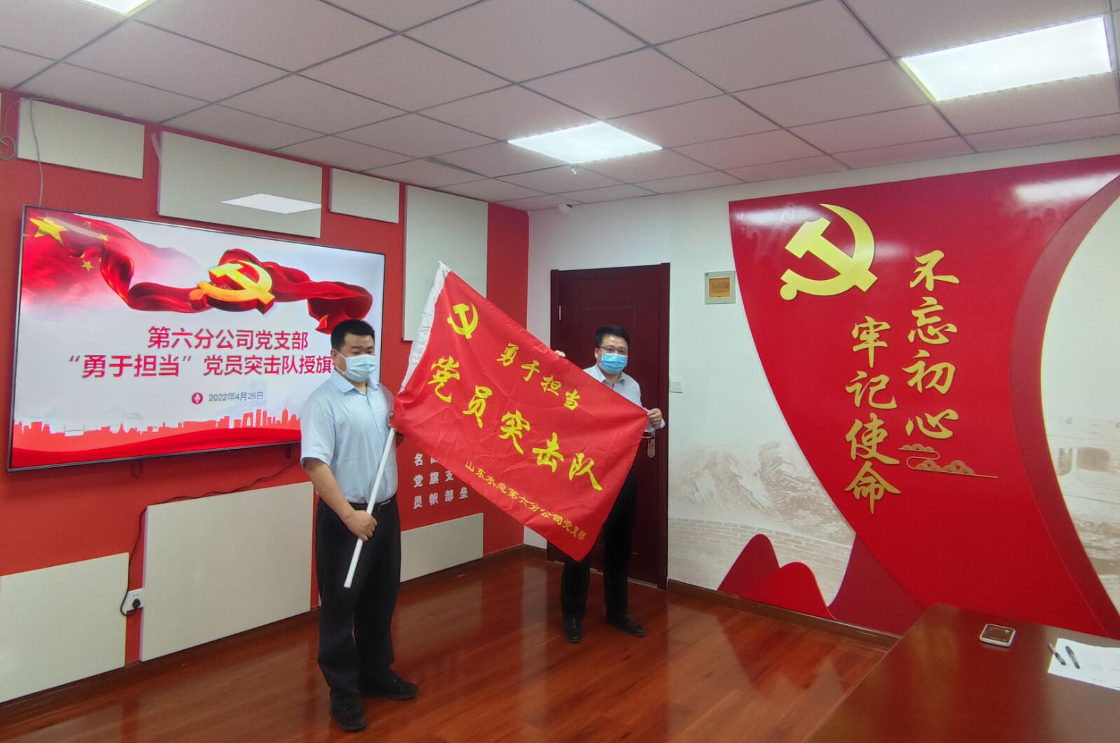 4月26日上午,第六分公司舉行“勇于擔當黨員突擊隊”授旗儀式,以動員激勵黨員在疫情防控、生產經營和安全生產工作中更好發揮先鋒模范作用。
