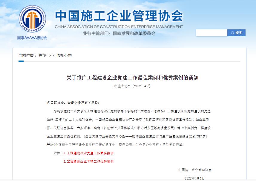 為展示黨的十八大以來工程建設(shè)行業(yè)在黨的領(lǐng)導(dǎo)下取得的偉大成就,總結(jié)推廣工程建設(shè)企業(yè)黨的建設(shè)的先進經(jīng)驗,迎接黨的二十大勝利召開,近日,中國施工企業(yè)管理協(xié)會組織開展了工程建設(shè)企業(yè)黨建工作優(yōu)秀案例評審工作,山東水總有限公司第六分公司黨支部的《塑品牌抓活動促活力 切實提升黨建工作水平》案例獲評“工程建設(shè)企業(yè)黨建工作優(yōu)秀案例”。