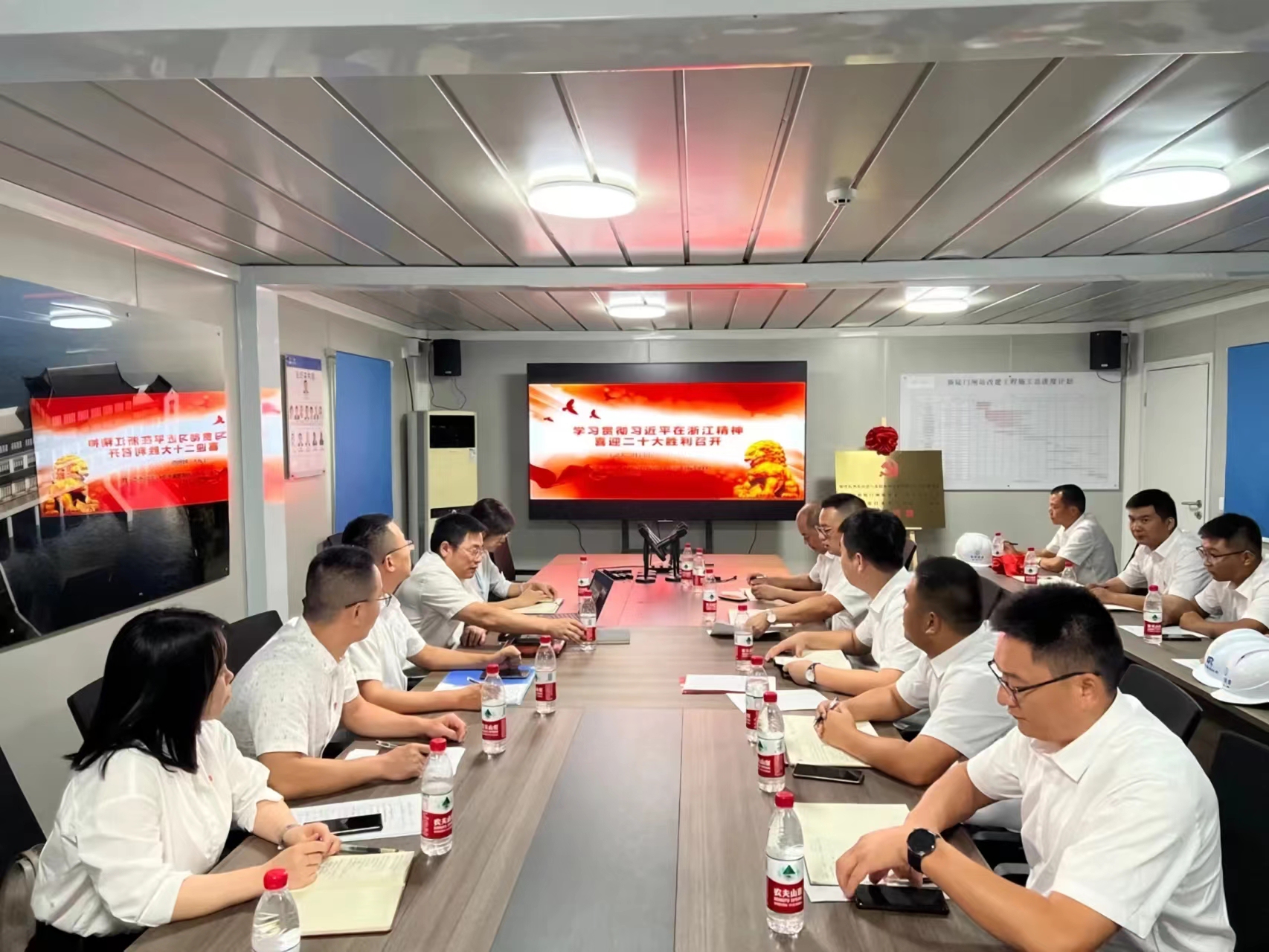 余杭、臨安兩區(qū)自然資源豐富、水利文化深厚。新陡門閘站改建工程和雙溪口水庫工程兩個項目均為重點水利項目,黨建聯(lián)建在浙江省開創(chuàng)了水利主管部門和項目臨時支部黨建共建的先河,也是水利項目臨時黨支部之間共建的首次嘗試,是落實黨建進(jìn)工地、“黨旗在基層一線高高飄揚”的進(jìn)一步探索,必將為后續(xù)其他項目的建設(shè)提供示范效應(yīng)。下一步,共建各方將加強溝通交流,形成互幫互助、比學(xué)趕超的良好氛圍,爭取兩個項目早日建成運行,為兩區(qū)人民共同富裕貢獻(xiàn)水利人的一份力量,以優(yōu)異的成績迎接黨的二十大勝利召開。
