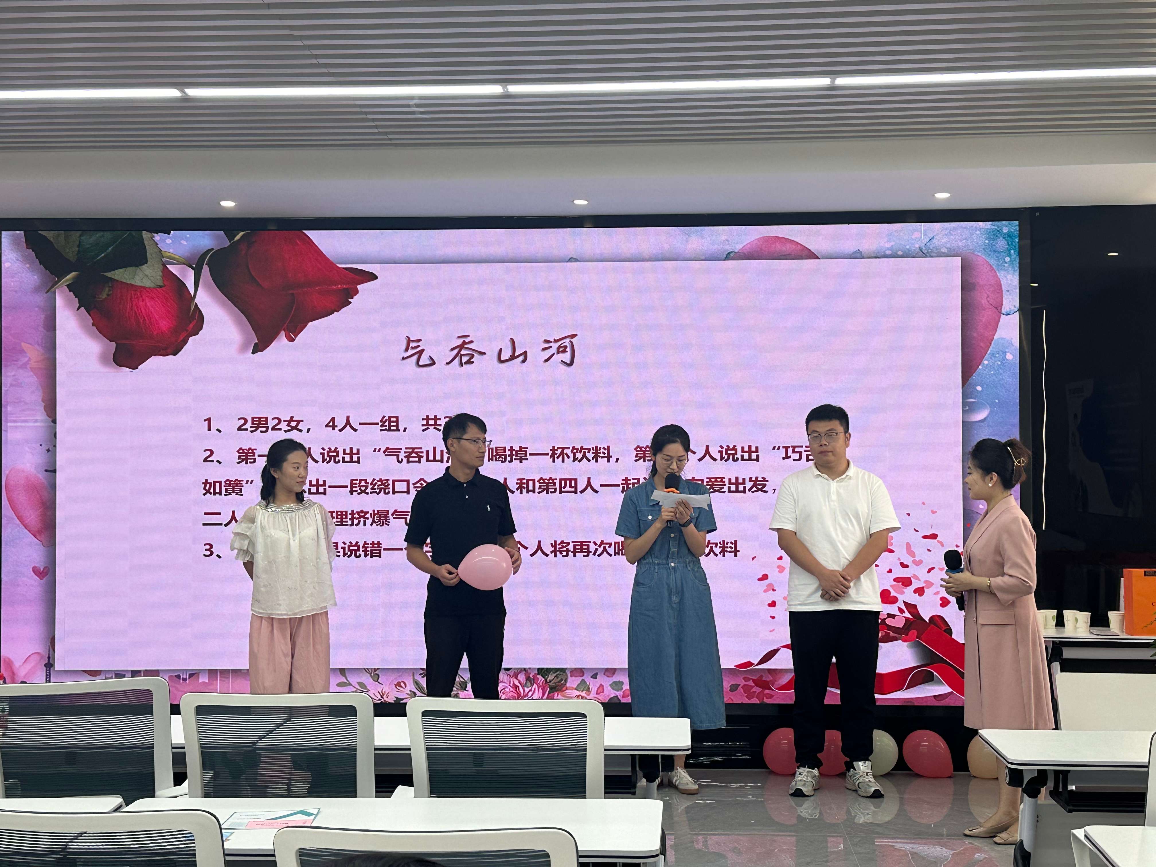 活動現場,青年們歡聚一堂,在主持人的開場白中拉開序幕。伴隨著優美的旋律,他們放下職場中的嚴謹,沉浸在輕松愉快的氛圍里。通過擊鼓傳花、氣吞山河、你畫我猜等趣味互動游戲,大家的心情從拘謹中慢慢釋放輕松和快樂,盡情參與到活動中。活動現場歡聲笑語,最終多人牽手成功。