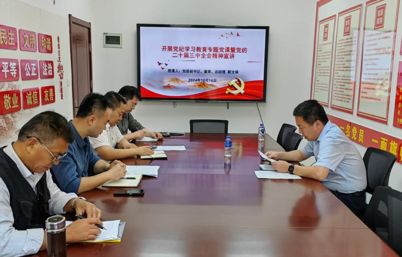 10月16日,公司黨委副書記、董事、總經(jīng)理靳文碩到建筑勞務(wù)公司開展黨紀(jì)學(xué)習(xí)教育專題黨課暨黨的二十屆三中全會精神宣講,勞務(wù)公司全體黨員參會。