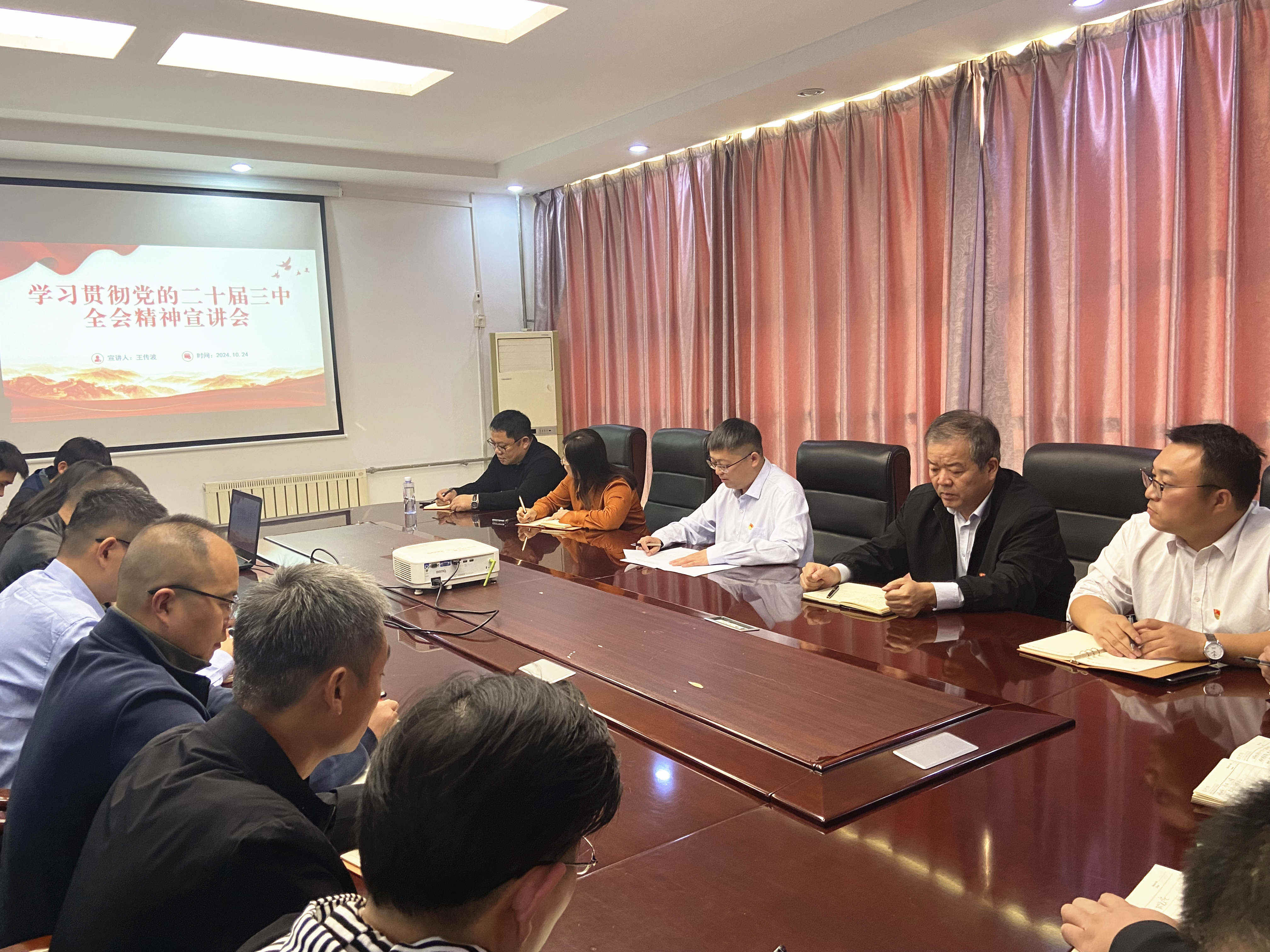 活動伊始,二局有限公司黨委書記、總經理王傳波在曲阜駐地三樓會議室以“深入學習貫徹黨的二十屆三中全會精神 以釘釘子精神抓好改革任務落地落實”為題,向二局有限公司全體黨員進行了黨的二十屆三中全會精神專題宣講。他圍繞水總公司黨委關于學習貫徹全會精神的部署要求,結合公司實際,重點闡述了黨的二十屆三中全會的精神要義和實踐要求,詳細講解了關于進一步全面深化改革的重大意義、重大成就、以及貫徹落實全會精神的具體措施,讓大家對黨的二十屆三中全會精神及全面深化改革有了更加全面、深刻的理解,并要求公司全體黨員深學細悟、全面把握全會精神內涵,自覺用全會精神武裝頭腦、指導實踐,持續以改革之力助推公司高質量發展再上新臺階。